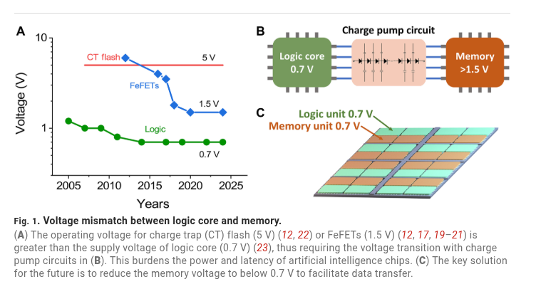 Nowoczesne układy logiczne pracują zwykle przy napięciu około 0,7 V. Tymczasem popularne pamięci nieulotne, w tym NAND flash, wymagają podczas zapisu napięć rzędu 5 V lub wyższych. Nawet wcześniejsze tranzystory ferroelektryczne typu FeFET potrzebowały ponad 1,5 V.