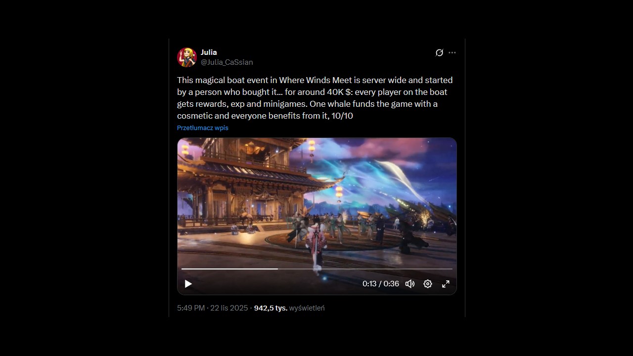 W darmowej grze RPG Where Winds Meet ktoś postanowił mocno zaszaleć. Jeden z graczy kupił luksusową łódź za kwotę niezłego samochodu z salonu. Przedmiot ma charakter wyłącznie kosmetyczny, pełni funkcję prestiżowego środka transportu i nie wpływa na przebieg rozgrywki. Mimo to zakup stał się głośnym wydarzeniem na forach.