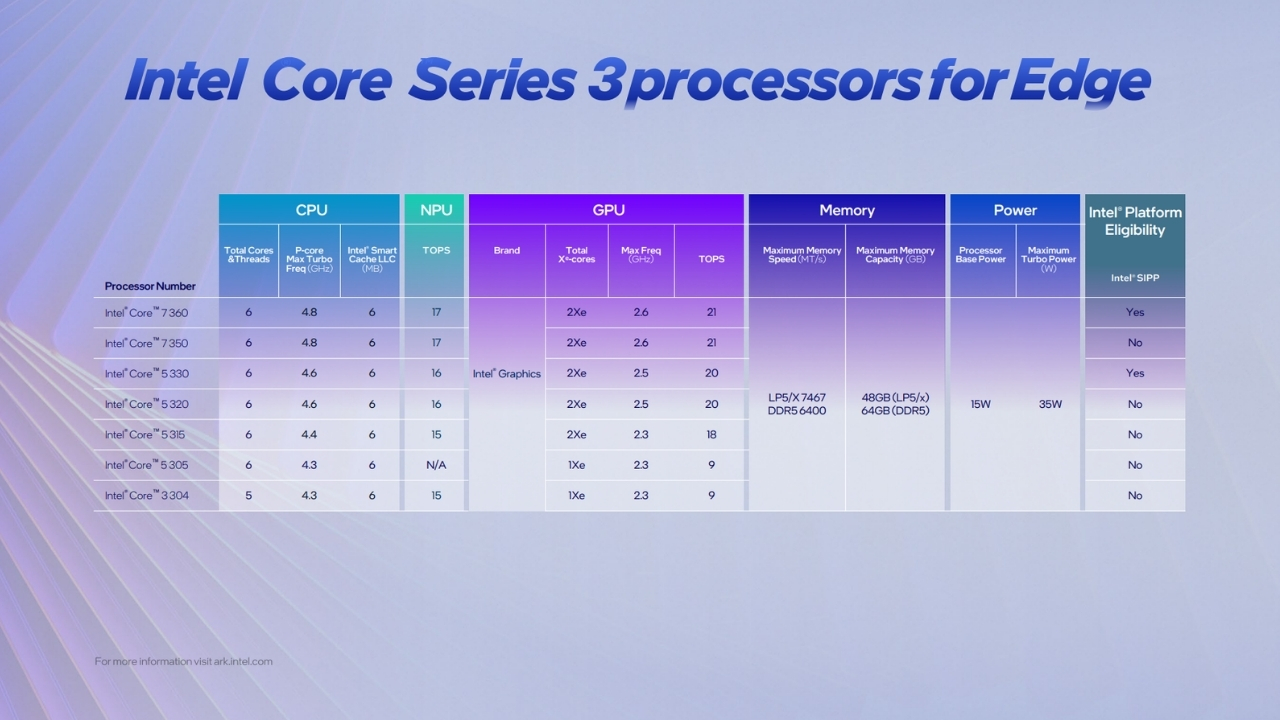 Procesory Core Series 3 bazują na architekturze znanej z nowszych układów Intel Core Ultra i są produkowane w technologii Intel 18A - najbardziej zaawansowanym procesie litograficznym rozwijanym w USA. W praktyce oznacza to większą efektywność energetyczną i lepszą integrację nowych funkcji przy zachowaniu niskiego poboru mocy.