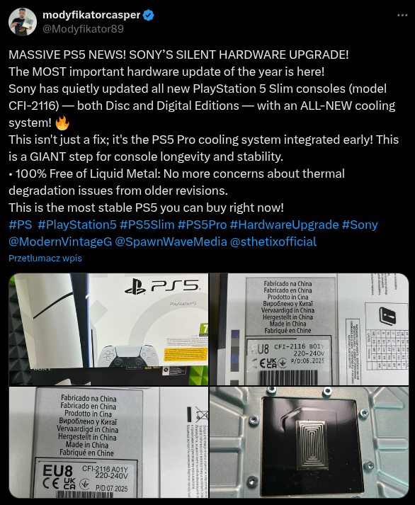 Informacje ujawnił użytkownik znany z analiz sprzętowych, publikujący pod pseudonimem @Modyfikator89. Zwraca uwagę na charakterystyczne linie wygrawerowane w obszarze Liquid Metal TIM. Występowanie rowków wskazuje na nowszą wersję konstrukcji. Gładka powierzchnia sugeruje, że urządzenie pochodzi z wcześniejszych serii i nie zostało objęte aktualizacją.