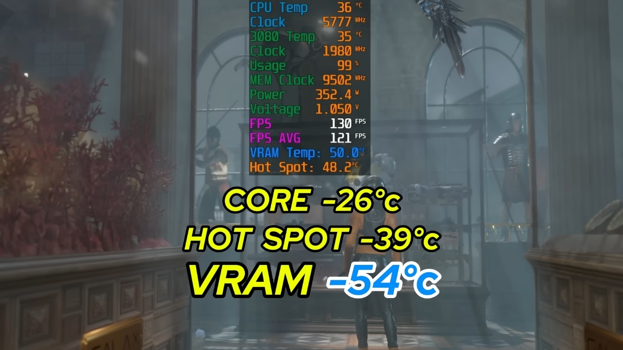 Dzięki dużo niższym temperaturom karta mogła także osiągać wyższe zegary. Tym samym jej wydajność na chłodzeniu Arctica bez podkręcania była wyższa niż na fabrycznym chłodzeniu ale z wykonanym OC.