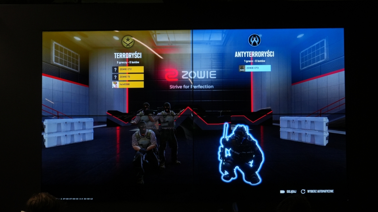 Nie zabrakło też konkursów ze strony ZOWIE. Po pierwsze i najważniejsze znajdziecie dwa wyjątkowe stoiska gamingowe. Czemu wyjątkowe? Bo odpalona jest na nich aim-mapa na czas. Każdego dnia do godziny 20:00 można spróbować swoich sił i ustrzelić 100 botów na czas. Codziennie w trakcie trwania IEM-u wygrywa trzech najszybszych uczestników. Za pierwsze miejsce rozdają myszkę, za drugie i trzecie można liczyć na podkładkę ZOWIE.