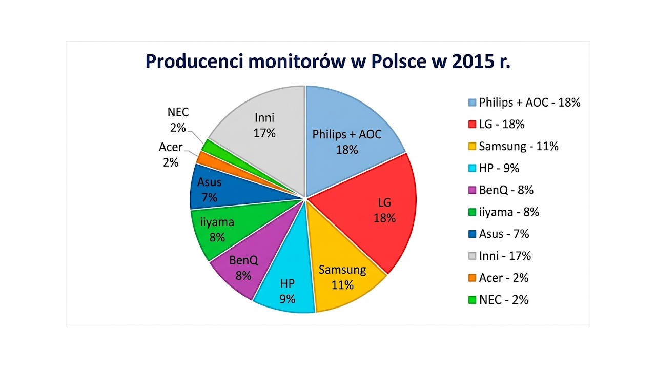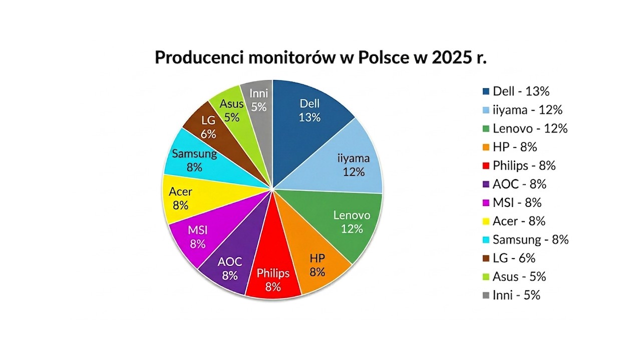 Dominację grupy DHL można łatwo zrozumieć – marki dominujące w segmencie pecetów zyskują na starcie kredyt zaufania w obszarze monitorów i dostawcy nie zawahali się go użyć. Wspomniana trójka nie wyczerpuje listy marek, które odmieniły obraz struktury rynku monitorów pod względem udziałów w wielkości sprzedaży. Japońska iiyama, tak skromna, że nawet nazwa zaczyna się z małej litery, jest obecna w Polsce od ćwierć wieku - długo była niszowa, bo kojarzona z wysoką jakością i równie wysoką ceną. Rynek był wtedy wrażliwy na każdy grosz, więc iiyama nie miała ambicji dominacji. A jednak, gdy giganci tracili, ona rosła. Powoli, po cichu, konsekwentnie. Aż w zeszłym roku awansowała na drugie miejsce, tracąc do lidera mniej niż jeden punkt procentowy.