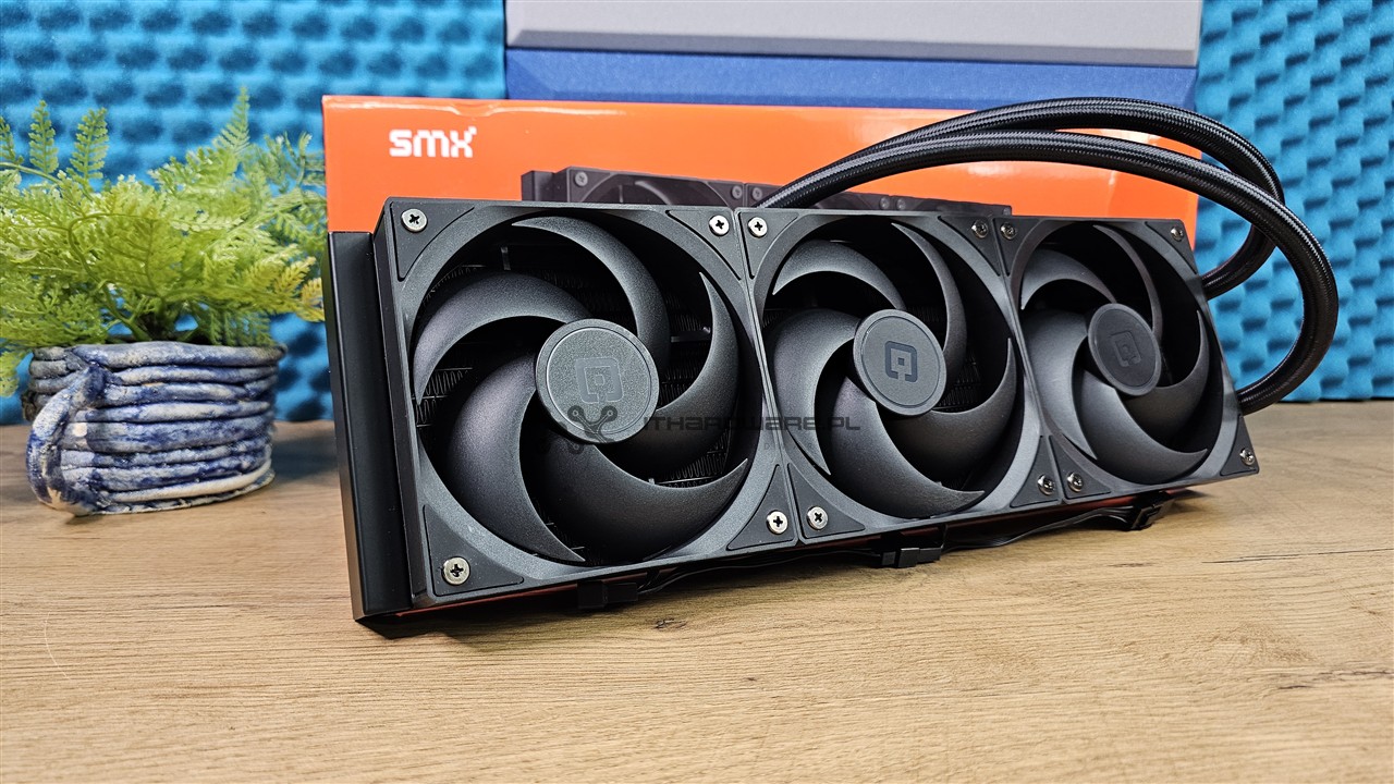 Wydajne chłodzenie AIO z podświetleniem bloku, zapewniające niskie temperatury nawet przy maksymalnym obciążeniu procesora i cichą pracę dzięki dwóm wentylatorom 140 mm.