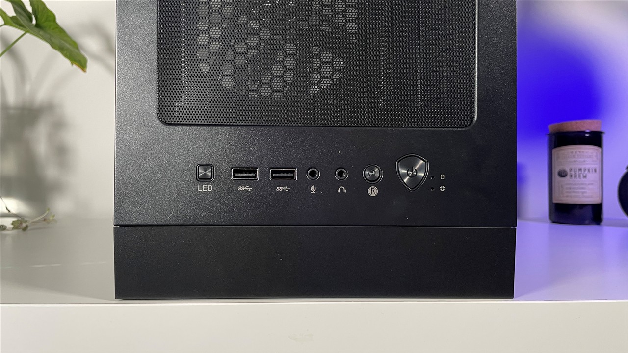 Przy konfiguracji budżetowego zestawu zdecydowanie warto uważnie przyjrzeć się modelowi MSI MAG Forge 120A Airflow. Tę konstrukcję nabędziemy już za około 255-279 zł (w zależności od sklepu). Czasem trafią się również promocje, dzięki którym koszt takiej obudowy spada do nieco ponad 200 złotych. A co otrzymujemy w zamian? Ano dosyć sporo, bo przede wszystkim aż sześć wentylatorów z podświetleniem ARGB, którym fabrycznie towarzyszy hub. Ponadto znajdziemy tutaj dedykowany przycisk na panelu górnym do sterowania podświetleniem. Co bardzo cieszy, nawet za tak niewielką kwotę MSI jest w stanie oferować więcej niż przestarzałe już USB 2.0. Oba dostępne porty na panelu I/O tej obudowy działają w standardzie USB 3.2 Gen 1. Poza tym mamy dwa osobne złącza na słuchawki i mikrofon.