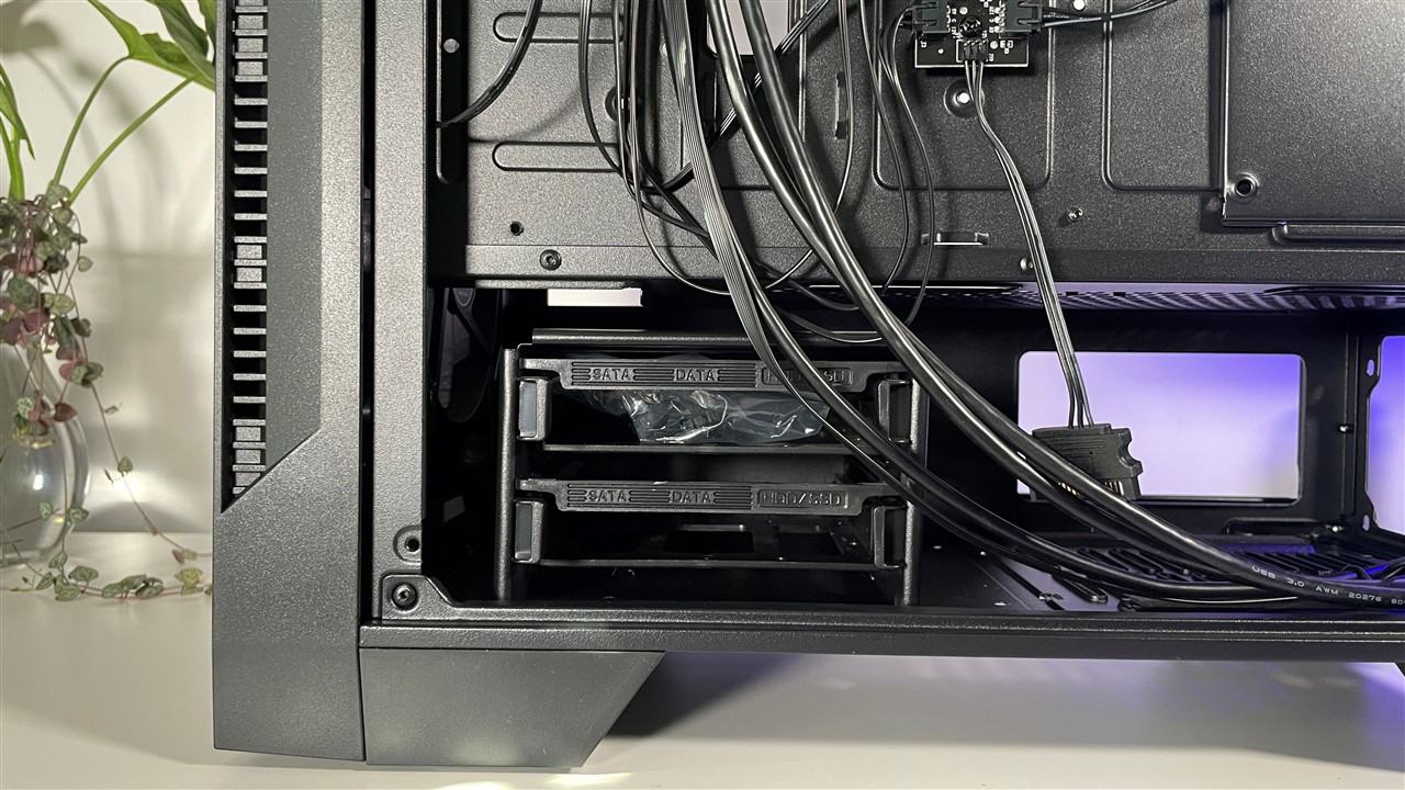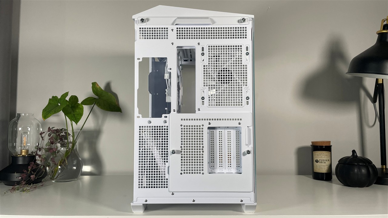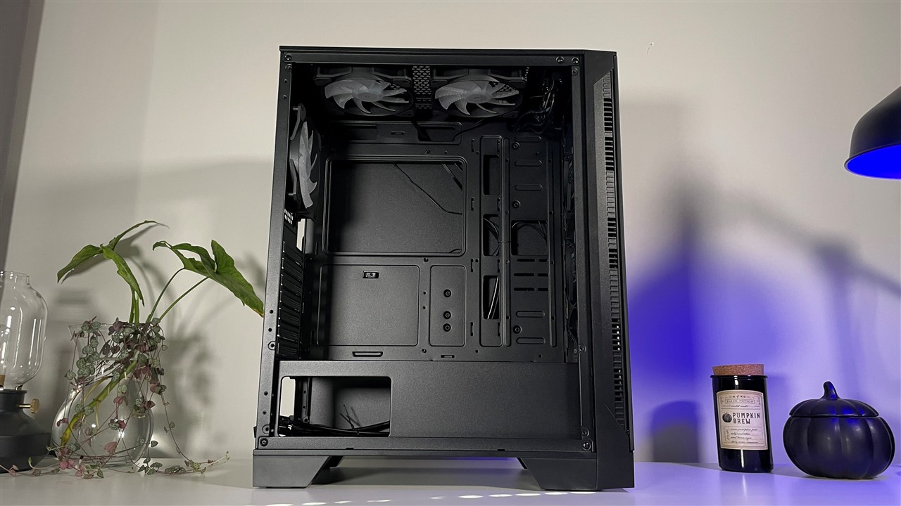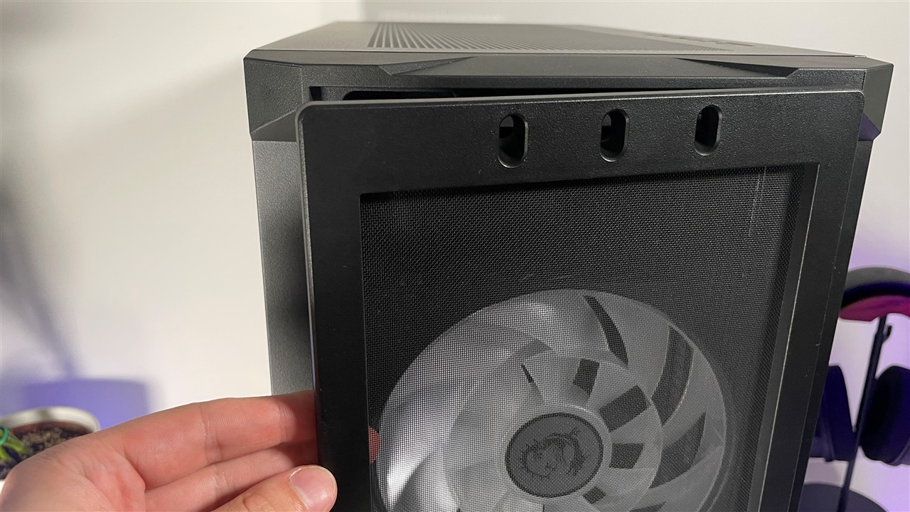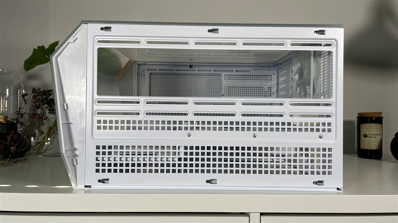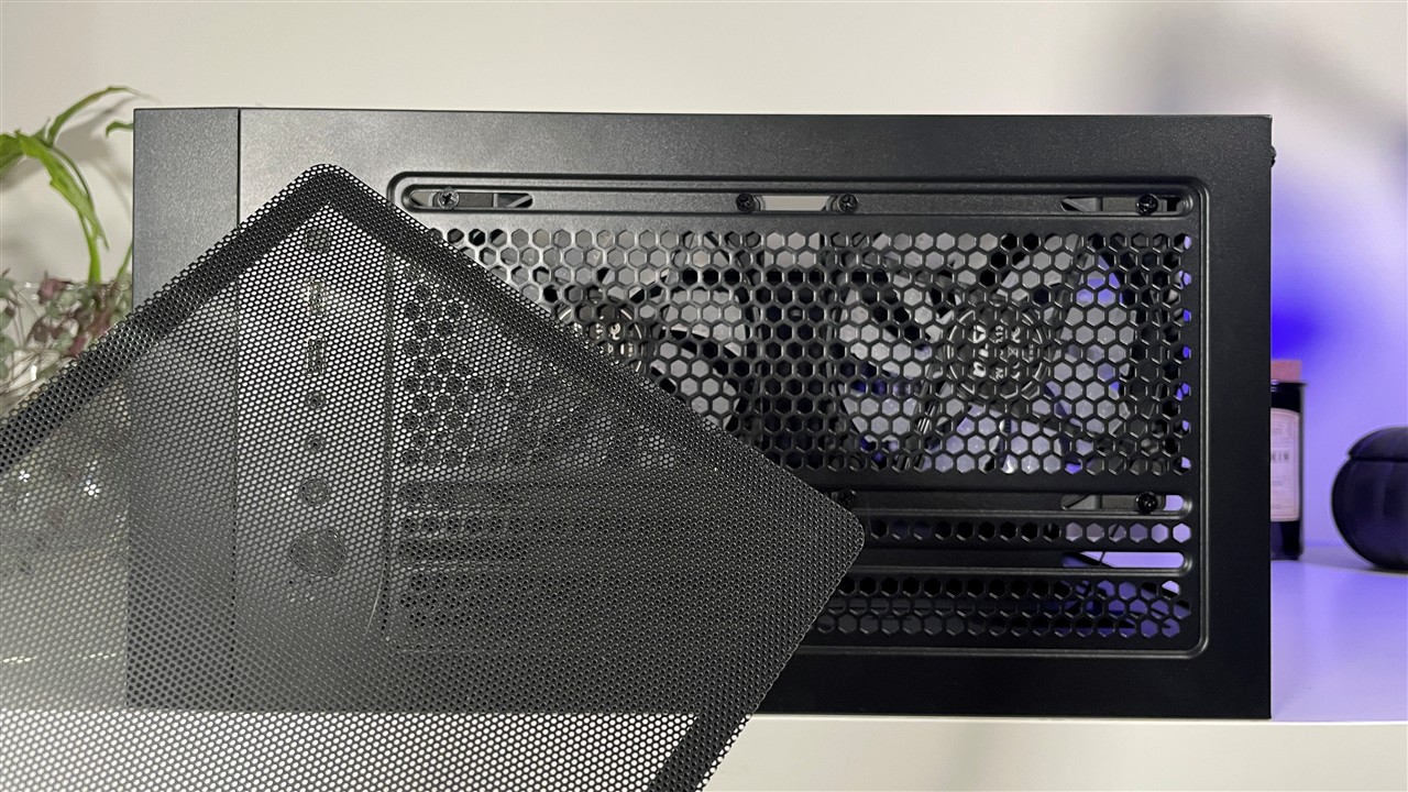 Warto również odnotować obecność filtrów przeciwkurzowych na górze oraz spodzie obudowy (pod zasilaczem). Kolejną ważną cechą jest wsparcie dla systemów chłodzenia cieczą. Z przodu oraz na górze zmieścimy radiatory 240 mm, więc nawet w tak przystępnej cenowo obudowie może kryć się całkiem potężny procek. Do tego szklany panel, niezła jak ten budżet jakość użytych materiałów i solidna perforacja.