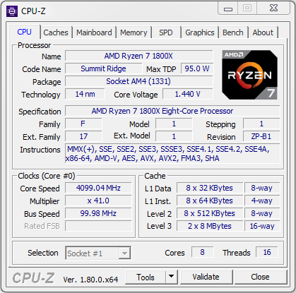 Tutaj poszło już zdecydowanie lepiej, głównie ze względu na to, że mogłem swobodnie zaaplikować 1,45 V na rdzeniach. Ostatecznie na obu procesorach osiągnąłem 4,1 GHz, czyli dokładnie 300 oraz 200 MHz więcej niż stabilne wartości, odpowiednio dla Ryzena 7 1700X oraz Ryzena 7 1800X. Oczywiście nie było mowy o jakimkolwiek obciążeniu, które skutkowało natychmiastowym restartem komputera z uwagi na kompletny brak stabilności. Co tu dużo mówić, z wydajnościowego punktu widzenia po prostu przydałoby się więcej. Porównując potencjał Ryzena chociażby do FX-ów czy Phenoma II, nietrudno dojść do wniosku, że jest to jeden z najsłabiej podkręcających się procesorów AMD z wyższej półki na przestrzeni ostatnich lat.