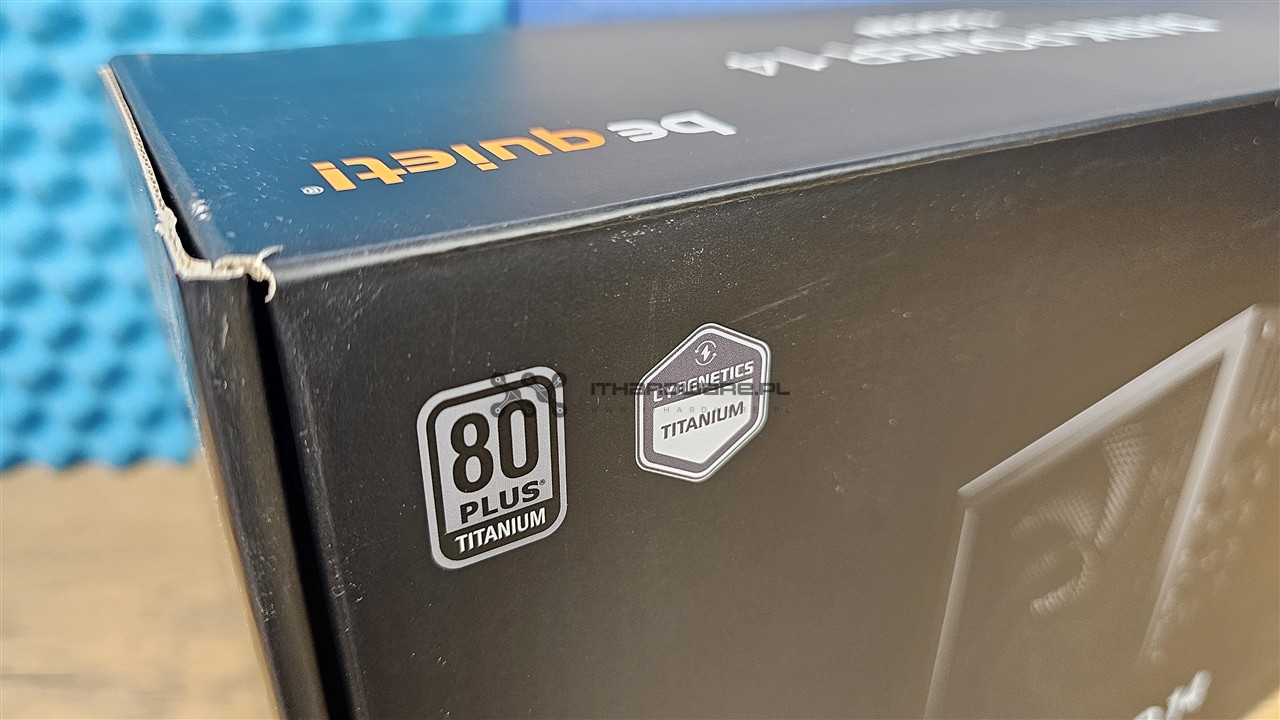 Zasilacz jest zapakowany w charakterystyczny dla be quiet! karton o czarnej kolorystyce. Na froncie znajdziemy informacje dotyczące modelu, mocy PSU, certyfikatu 80 PLUS Titanium oraz Cybenetics Titanium, a także poglądowe zdjęcie zasilacza. Tył opakowania zawiera tabliczkę prądowo-napięciową oraz kod QR prowadzący do strony produktu. Obok informacji "Developed in Germany" znajduje się oznaczenie zgodności z PCIe 5.1.