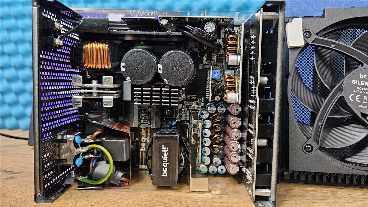 be quiet! Dark Power 14 korzysta z nowej platformy OEM CWT i topologii pełnego mostu z układem rezonansowym LLC, synchronicznym prostownikiem oraz przetwornicami DC-DC. Producent konsekwentnie stosuje aktywne prostowanie po stronie pierwotnej, gdzie klasyczny mostek prostowniczy został zastąpiony tranzystorami, co przekłada się na wyższą sprawność energetyczną oraz mniejsze straty cieplne. W porównaniu do Dark Power 12 i Dark Power 13 zmieniono zarówno układ komponentów na płycie głównej, jak i filozofię chłodzenia, co było konieczne ze względu na wprowadzenie trybu półpasywnej pracy wentylatora.