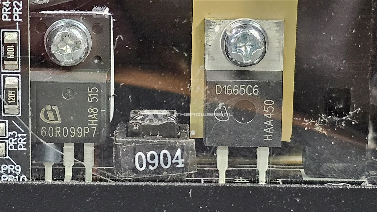 | Tranzystory APFC | 3x Infineon IPA60R099P7 (650 V, 20 A @ 100 °C, Rds(on): 99 mΩ) |