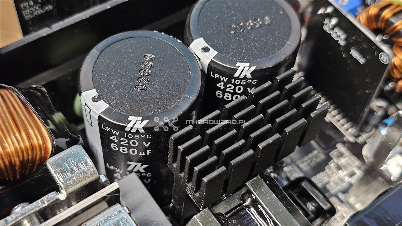 Lista komponentów potwierdza wysoką jakość zastosowanej elektroniki, w tym markowe tranzystory oraz kontrolery marki Champion, a także japońskie kondensatory elektrolityczne i aluminiowo-polimerowe marek Chemi-Con oraz FPCAP. Producent zastosował również kondensatory TK, które są poprawnej, wysokiej jakości komponentami, jednak nie reprezentują tego samego poziomu co topowe japońskie marki, takie jak Rubycon, Nichicon czy Chemi-Con. Stanowisko be quiet! jest w tym zakresie jasne – kondensatory TK mają porównywalne parametry i trwałość względem innych japońskich kondensatorów o tej samej specyfikacji i są traktowane jako w pełni zamienne. To podejście jest spójne z filozofią producenta, który swoją pewność co do jakości zastosowanych komponentów potwierdza 10-letnim okresem gwarancyjnym.
