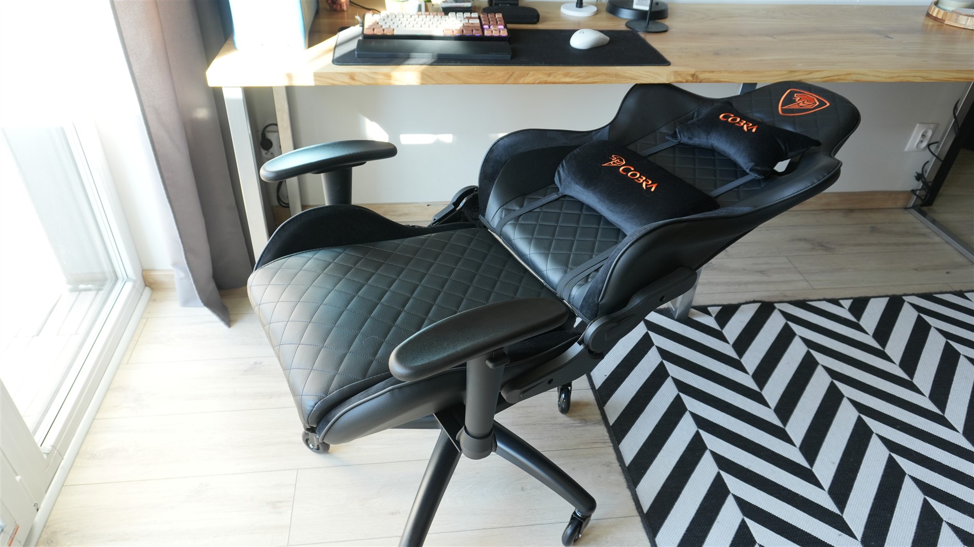 Swój wywód zacznę od poinformowania Was, czego używam do pracy na co dzień, bo wydaje mi się do dosyć istotne. Z uwagi na długie godziny spędzane przy biurku postawiłem na fotel ergonomiczny Mark Adler Expert 5.3. Przekonał mnie między innymi wykonaniem z siatki, która poprawia przepływ powietrza. Przez ostatnich kilka testowania używałem jednak wyłącznie tytułowego modelu od Cobry. Zmiana była odczuwalna, ale to czy na gorsze, czy na lepsze zależy od tego jakie pytanie zadacie. Bo na przykład pod kątem wygody pozytywnie się zaskoczyłem.