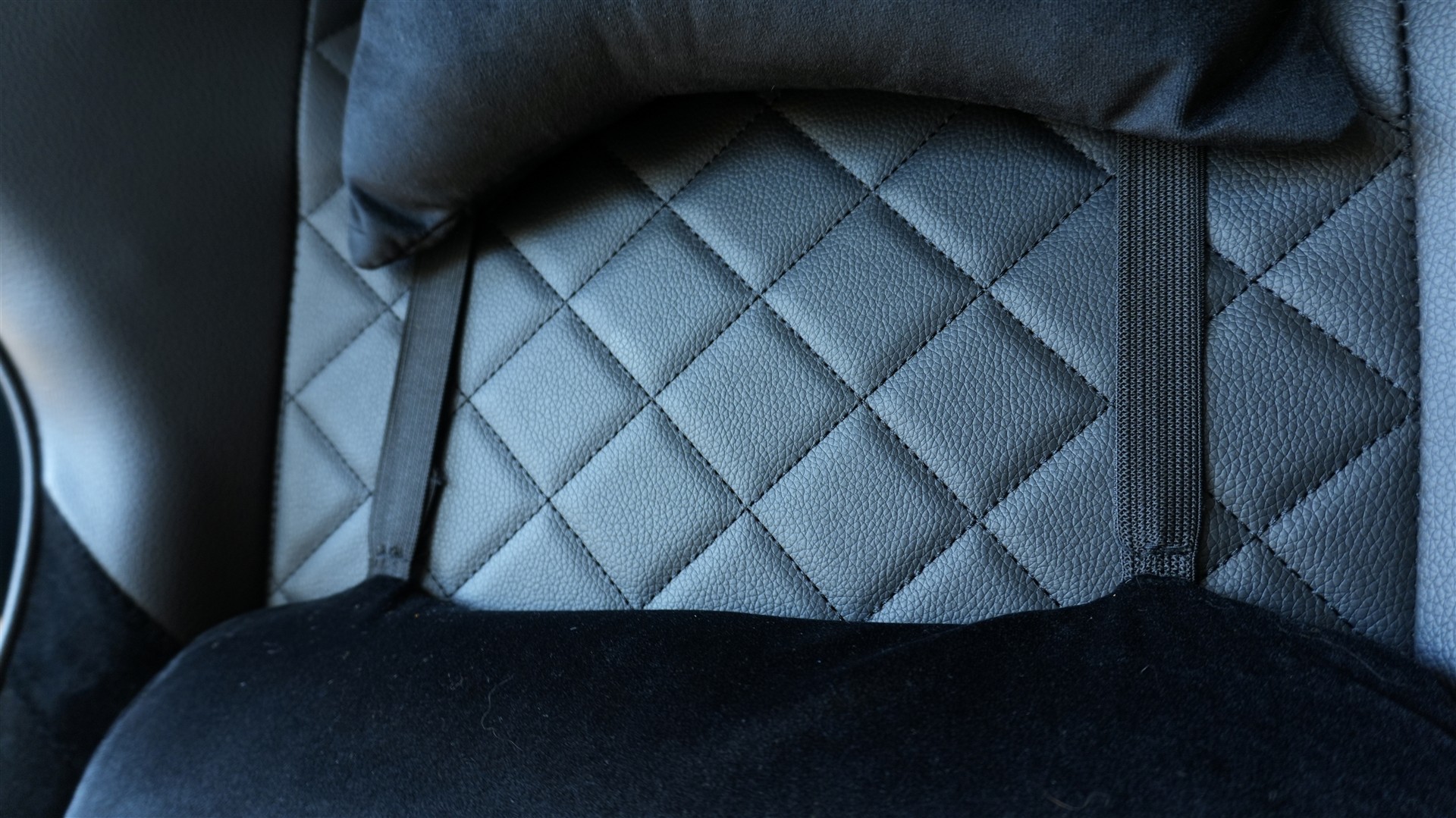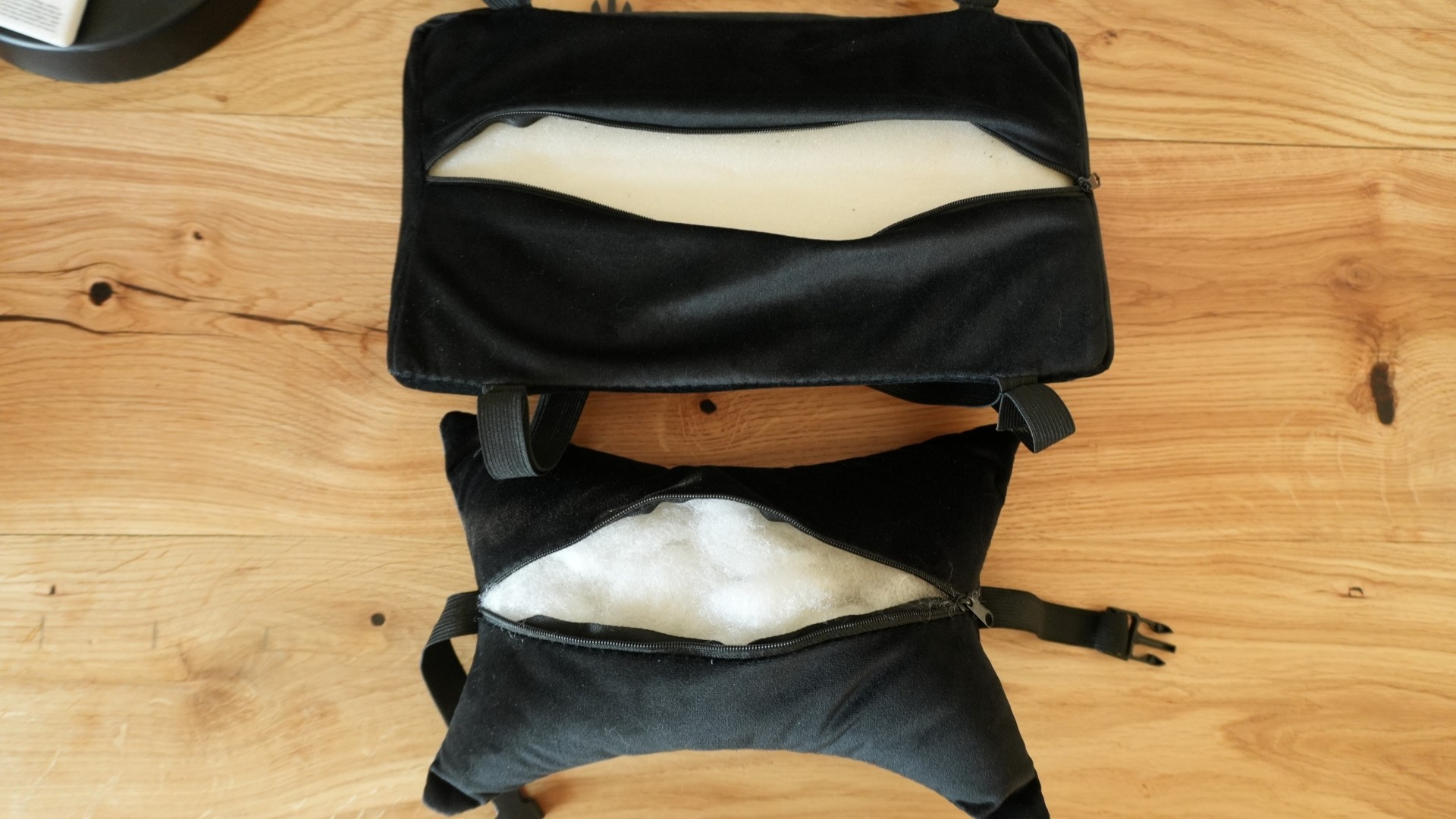 W tym wszystkim istnieje również opcja regulacji góra-dół. I to akurat działa jak należy. Dźwignia pracuje prawidłowo i to samo można powiedzieć o siłowniku. Do „użytkowych” funkcji tego fotela zaliczam jeszcze możliwość rozpięcia poduszek. Z tyłu mamy ekspres, dzięki czemu w przypadku ubrudzenia istnieje możliwość ich łatwiejszego wyczyszczenia. Szkoda tylko, że w środku poduszki pod kart jest goła wata, którą trzeba byłoby w takiej sytuacji wyjąć, a następnie ponownie upchnąć wewnątrz. W tej pod lędźwie mamy natomiast zwykły kawałek pianki.
