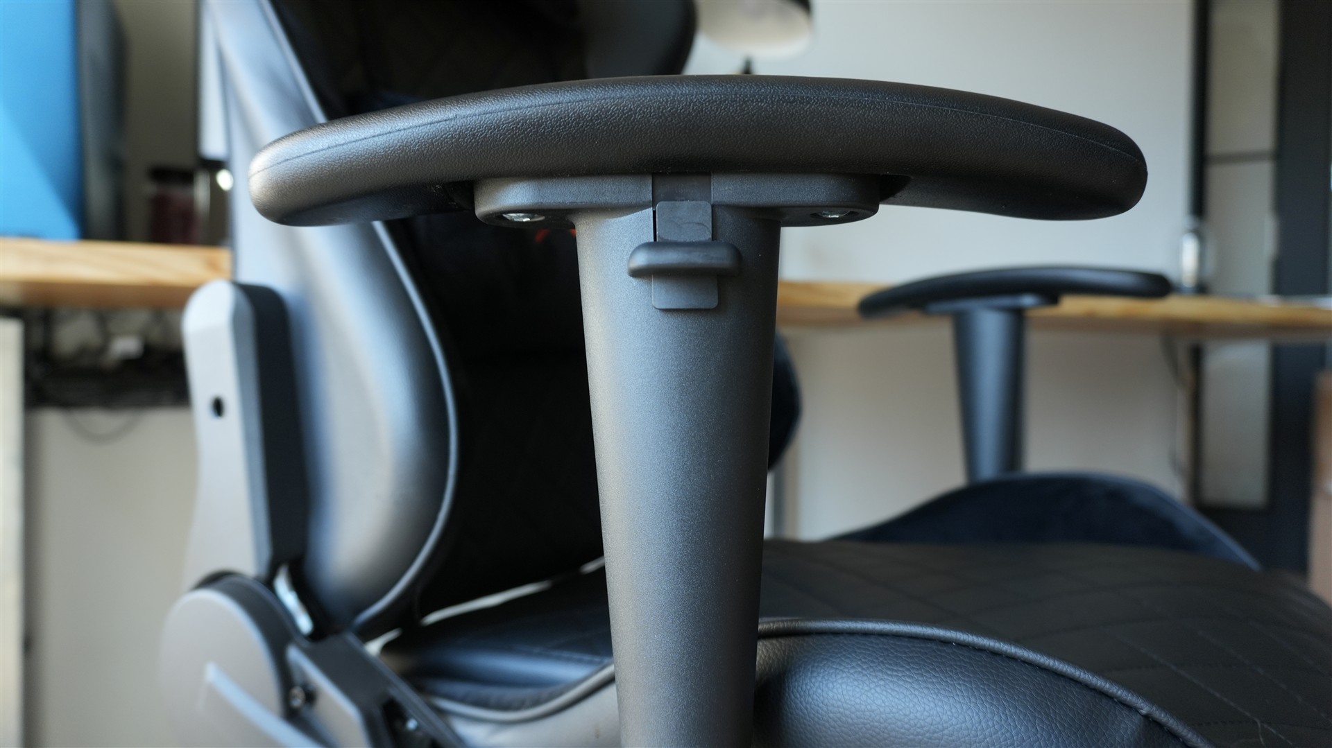 Co do samej jakości wykonania z grubsza jest porządnie. Na pewno nie czepiałbym się kluczowych elementów, czyli oparcia czy siedziska. Dobre zdanie mam również o poduszkach. Najbardziej pod tym względem rażą mnie jednak podłokietniki. Okej, fajnie, że mają regulację góra-dół i na boki, to zdecydowanie na plus, ale sama ten ruch… no nie należy do najprzyjemniejszych. Również kształt podłokietników oraz ich budowa i jakość materiałów przywodzą na myśl tanie fotele ze szkolnych sal informatycznych. Są praktyczne, to fakt, ale poza tym… no cóż, w mojej ocenie wyglądają kiepsko.