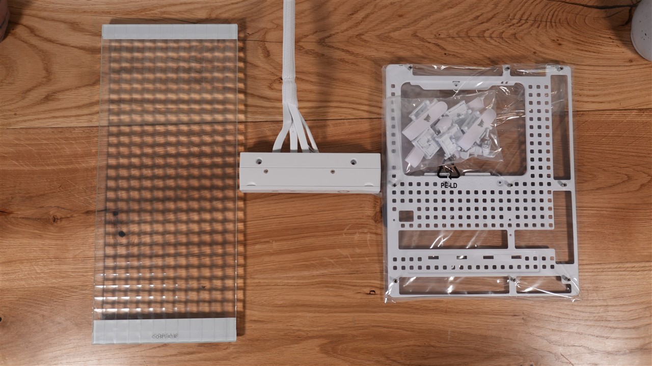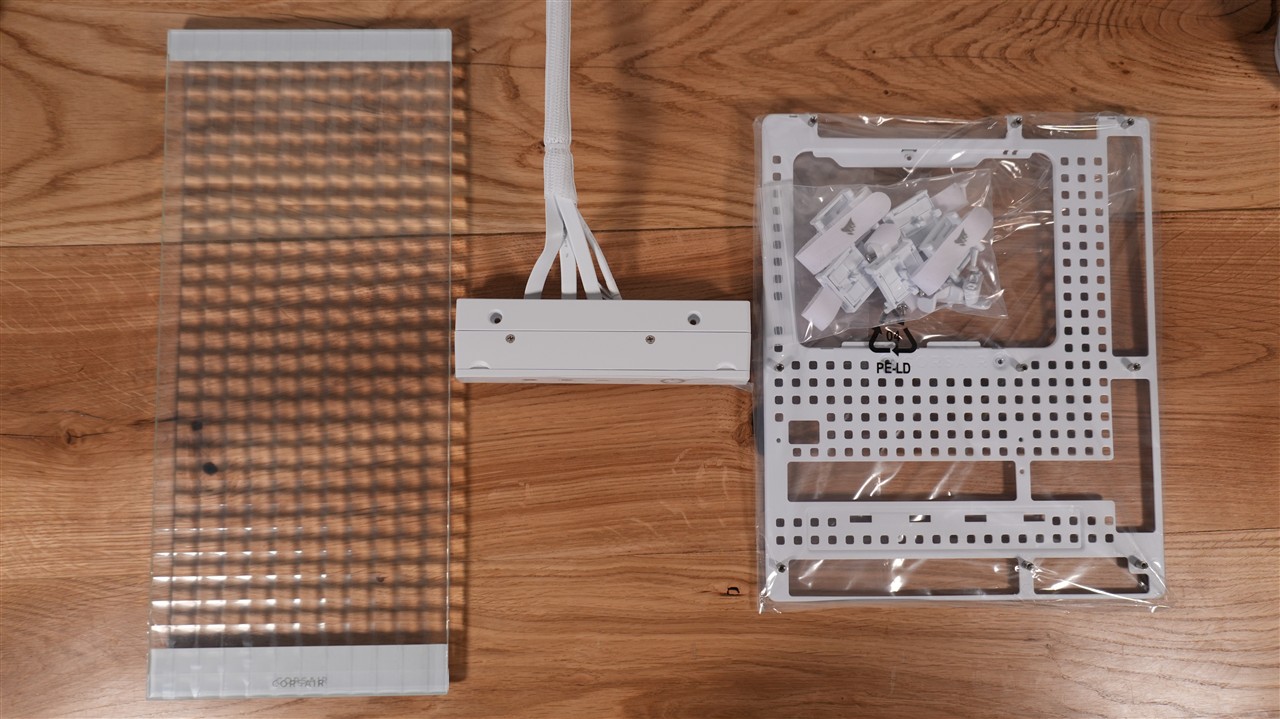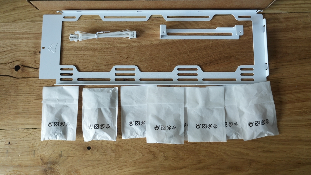 Temat dołączonych akcesoriów można w zasadzie podzielić na dwie kategorie. Po pierwsze standardowy komplet, który otrzymuje każdy nabywca tej obudowy. Po drugie wymienne elementy. Tutaj jednak skupię się na podstawowym pakiecie akcesoriów, bo całą resztę omówiliśmy sobie w osobnej sekcji. Wraz z obudową Corsair Frame 4000X RS otrzymujemy niezbędny komplet śrubek, opaski samozaciskowe, rozdzielacz przewodu od front panelu oraz ramkę do mocowania wentylatorów lub chłodnicy. Można więc powiedzieć, że Corsair dał coś więcej niż tylko niezbędne minimum.