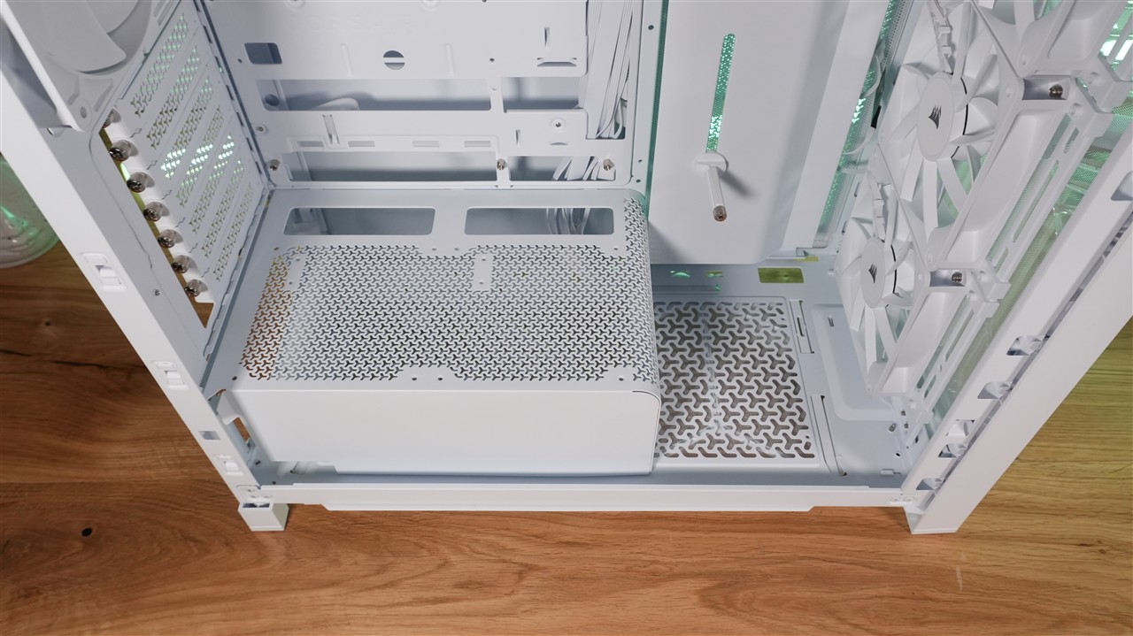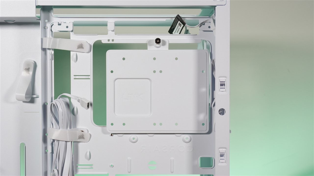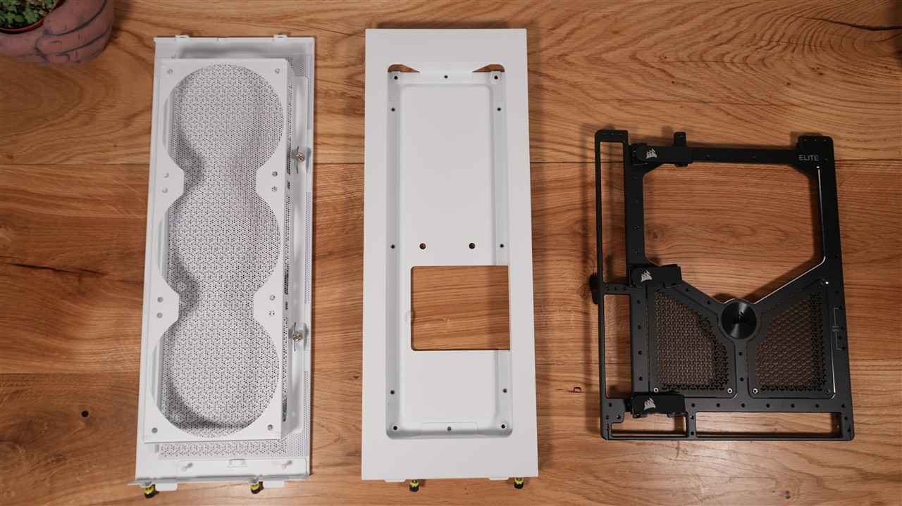 Jedną z ciekawszych rzeczy jest opcja zamiany tacki, do której mocowana jest płyta główna. Corsair daje tutaj trzy opcje: klasyczna stalowa, RapidRoute 2.0 (z wycięciami) oraz Elite w kolorze „Meteorite Aluminum”. Warto dodać, że standardowa wersja i RapidRoute 2.0 są dostępne zarówno w kolorze białym, jak i czarnym.