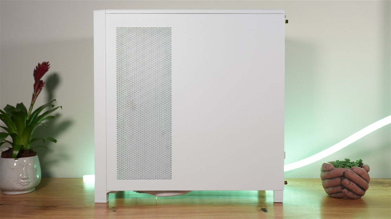 I tutaj po raz kolejny dochodzimy do tematu, który - jak już wiemy - zależy od wybranej konfiguracji. Ponownie skupimy się jednak na fabrycznej konfiguracji. A ta oferuje przede wszystkim szklany panel pokrywający niemalże cały bok. Z drugiej strony znajduje się z kolei panel blaszany z otworami wentylacyjnymi w miejscu, gdzie istnieje opcja montażu wentylatorów. I tutaj leci plus dla Corsair, bo zamontowali tam filtr przeciwkurzowy. Szkoda tylko, że nie siateczkowy jak na froncie i na spodzie, bo byłby zdecydowanie bardziej efektywny. Cóż, mimo wszystko dobrze, że coś jednak w tym miejscu chroni wnętrze przed zanieczyszczeniami. Koniecznie trzeba jeszcze dodać, że panele mocowane są przy pomocy szybkośrubek. Szkoda, że nie postawiono na bezśrubkowe mocowanie, jak chociażby na froncie obudowy. Niby nie jest to wada, ale bez śrubek zawsze jest szybciej i wygodniej.