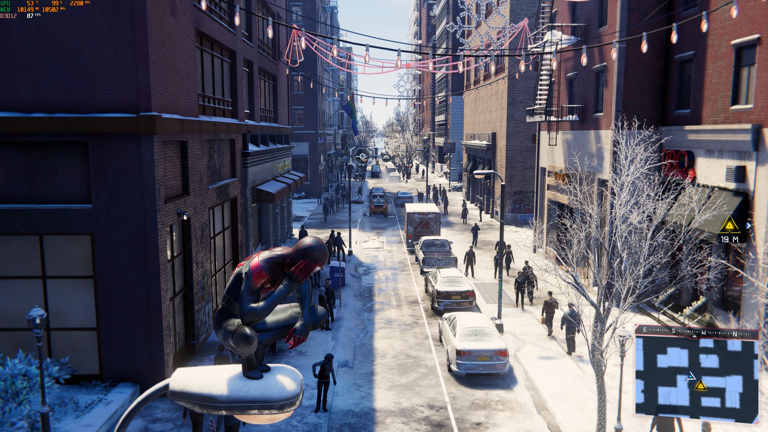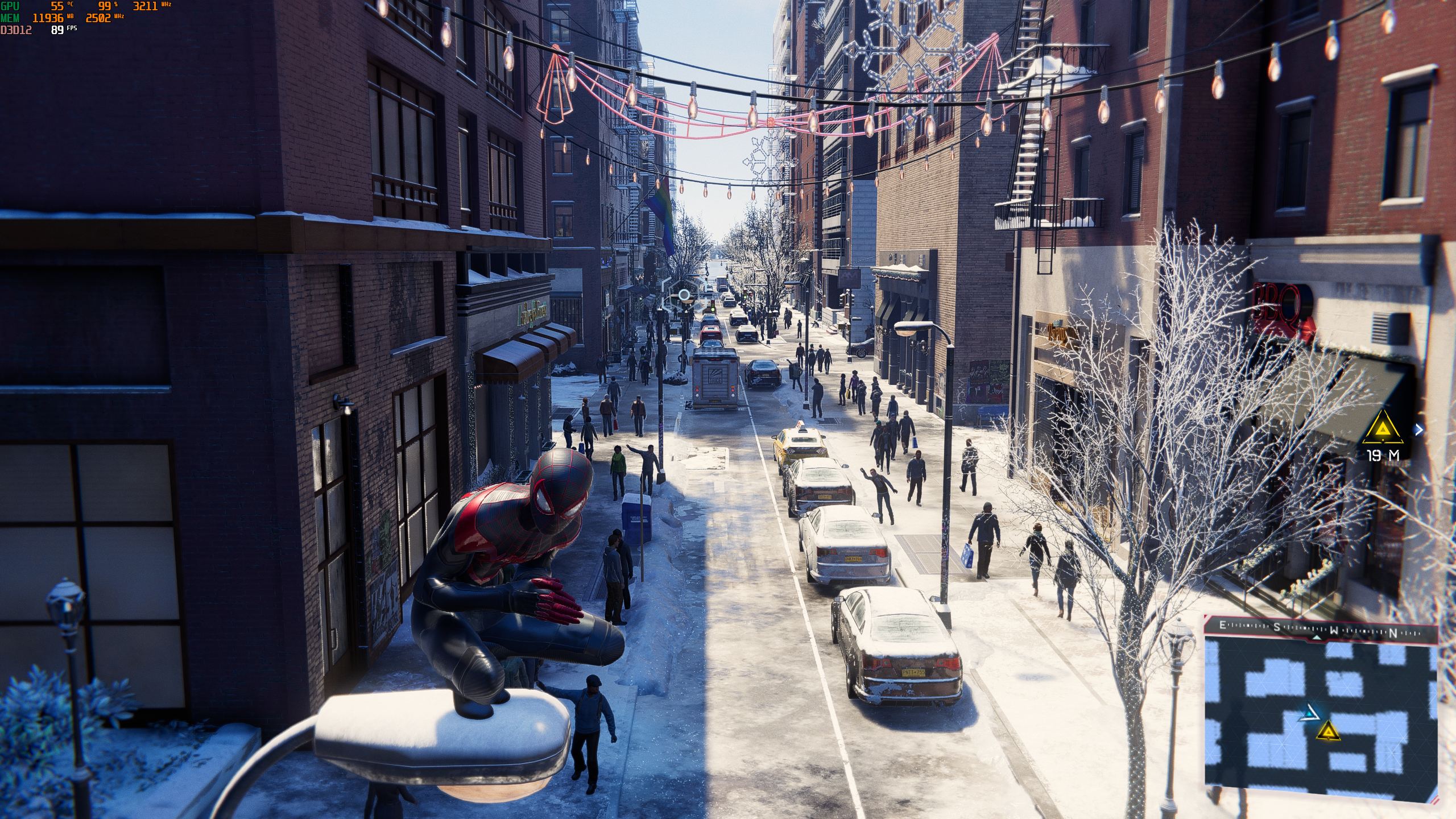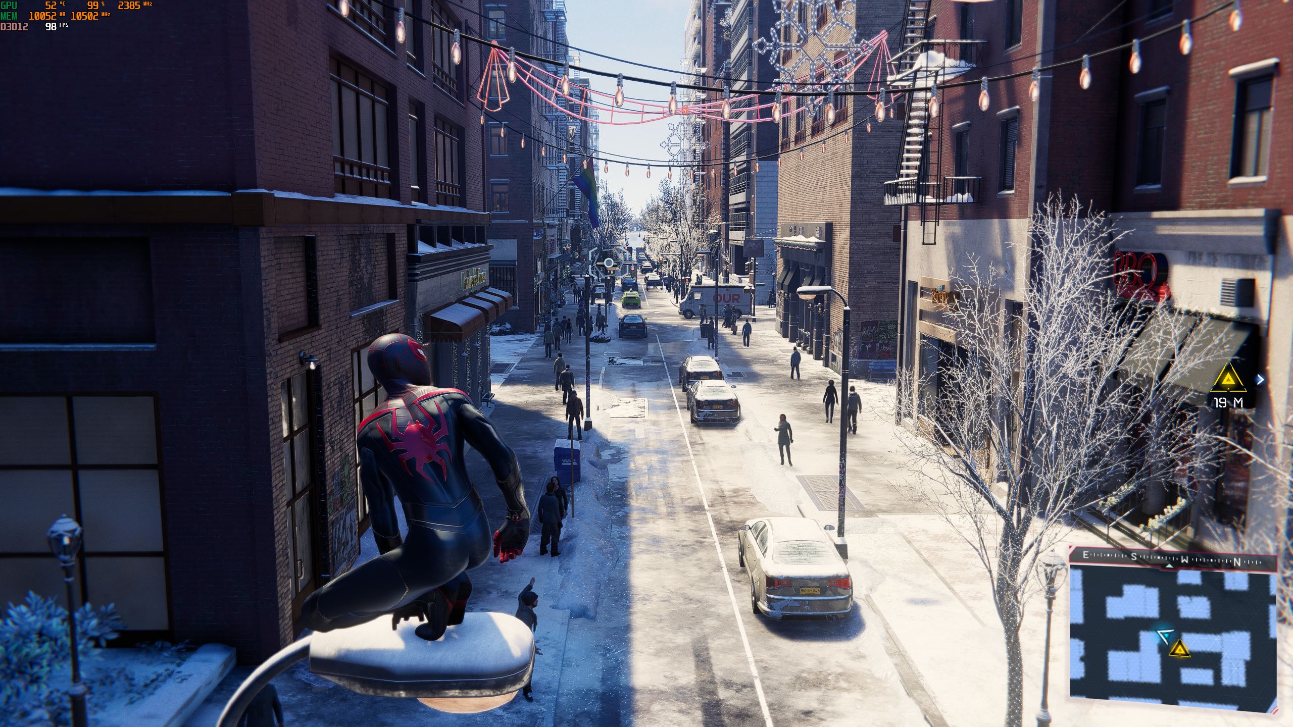 W Spider-Man w lokalizacji A warto zwrócić uwagę na budynki, gdzie w zależności od wybranego skalera, można dostrzec mniejsze lub większe migotanie oraz postrzępione krawędzie. Najsłabiej z tymi wyzwaniami radzą sobie DLSS 3 i FSR 4, choć wciąż przyzwoicie. Z kolei DLSS 4 wyraźnie zmniejsza widoczność tych artefaktów, a DLSS 4.5 eliminuje je praktycznie całkowicie. Odnośnie lokalizacji B, na początku nagrań, kiedy zaczyna się przerywnik filmowy, istotną rzeczą są pokryte śniegiem i lodem gałęzie drzew, które z FSR 4 dość wyraźnie migoczą. Z DLSS 3 jest to mniej widoczne, a DLSS 4 i DLSS 4.5 przynoszą dalszą poprawę, przy czym według mnie Transformer v2 jest nawet marginalnie lepszy od poprzednika. A, kiedy już bohater dostaje się do warsztatu, istotnymi elementami sceny jest elektronika na półkach oraz dokumenty na stole, widoczne później. Największą trudność sprawiają one FSR 4, a wszystkie warianty DLSS wypadają nieco lepiej, choć oba Transformery w mojej ocenie mają marginalną przewagę nad DLSS 3.