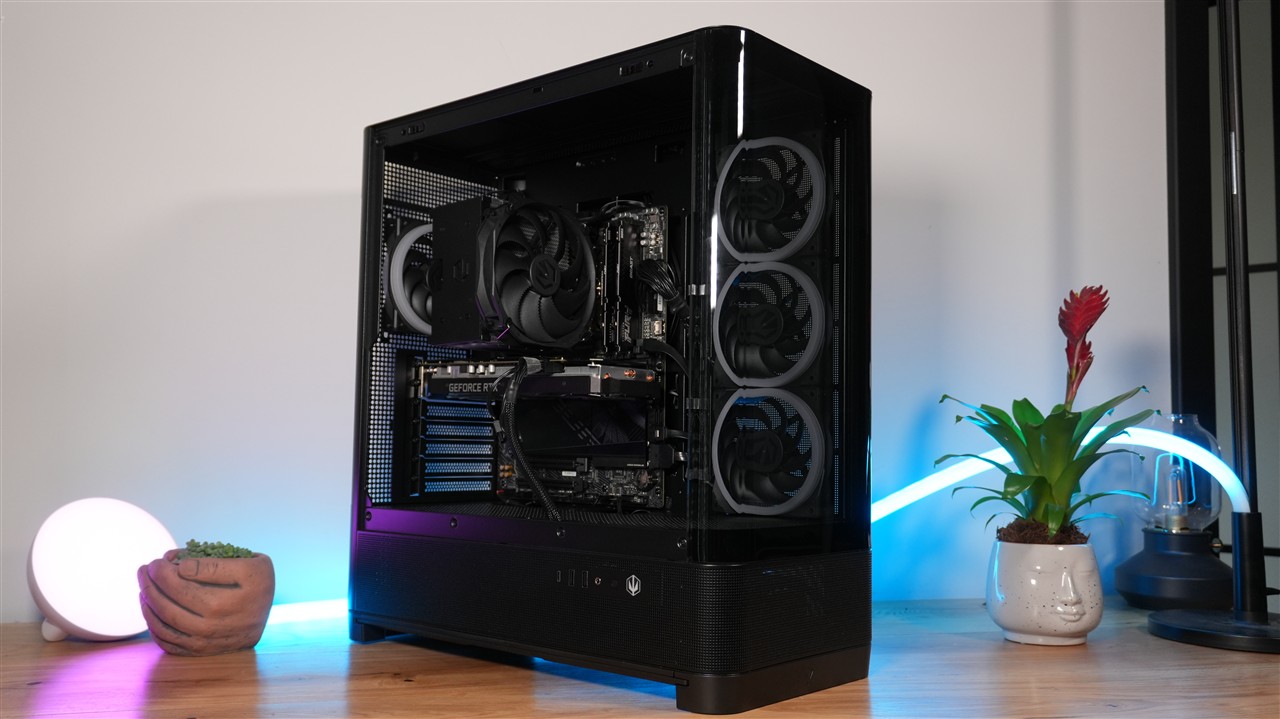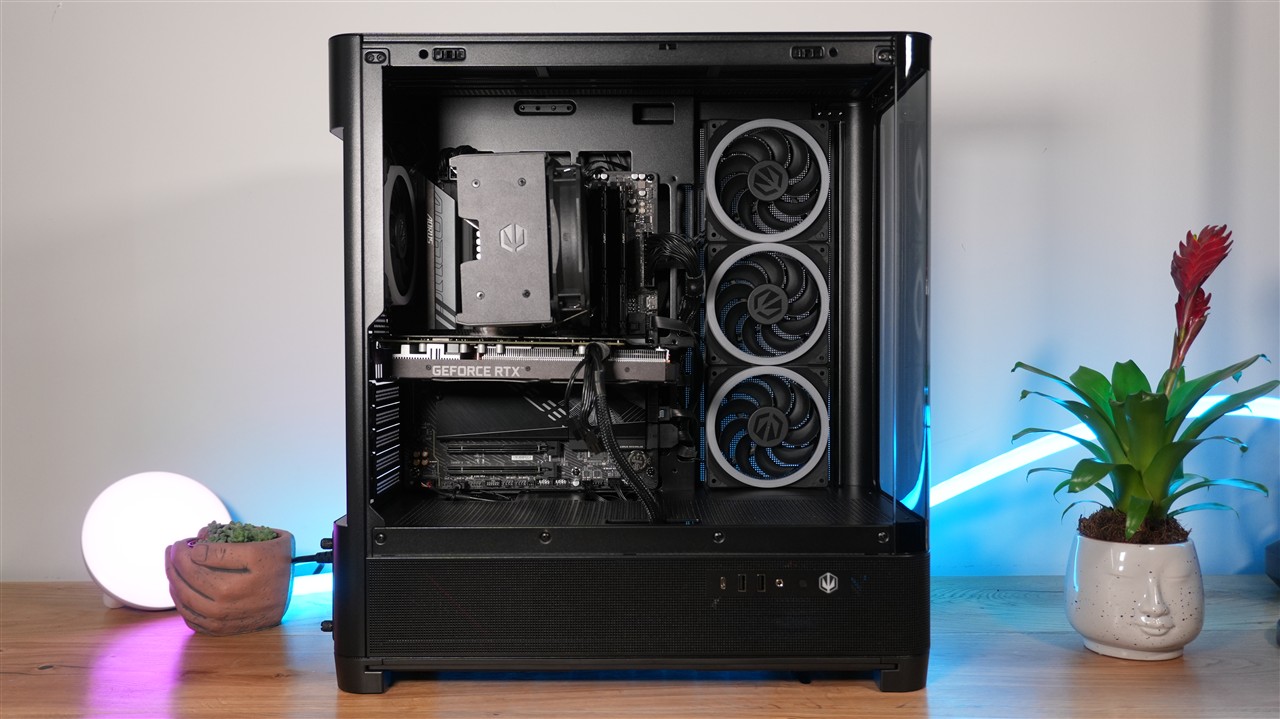 Producent zadbał też o dobry zestaw złączy na panelu I/O (w tym USB 3.2 Gen 2). Do tego dochodzi opcja montażu chłodnicy 420 mm, spora ilość miejsca na kartę graficzną i możliwość rozbudowania chłodzenia o kolejne wentylatory. Jest również całkiem cicha przy 1000 RPM oraz przy maksymalnej wartości RPM.