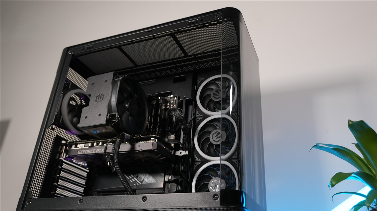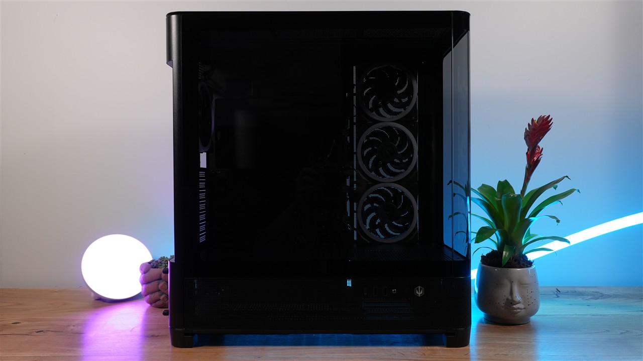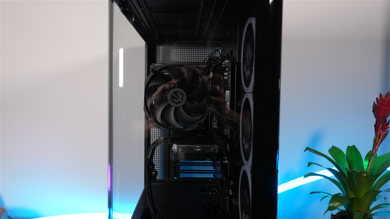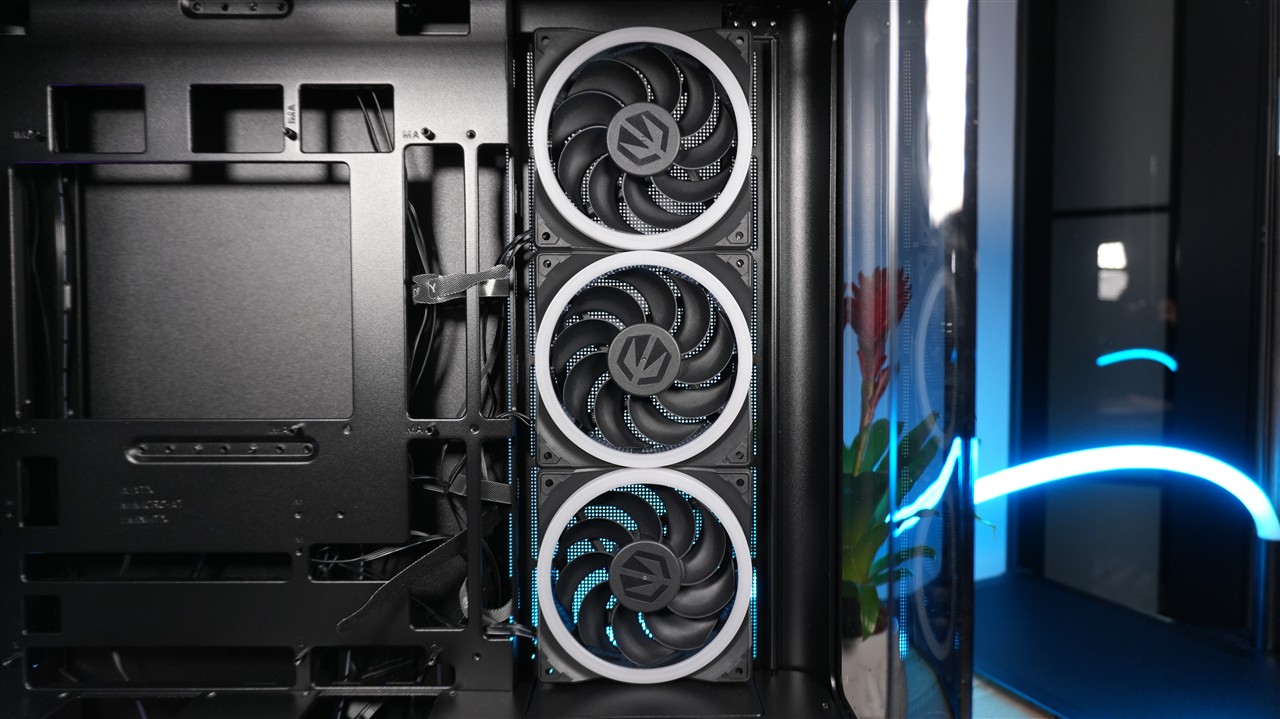 Szkoda tylko, że potencjał tych wentylatorów jest w pewnym sensie marnowany. Trzy sztuki umieszczone na boku wieją na szkło hartowane, zamiast na podzespoły. W praktyce więc mogą to być dobre wentylatory, tylko z bardzo niekorzystnym rozmieszczeniem.