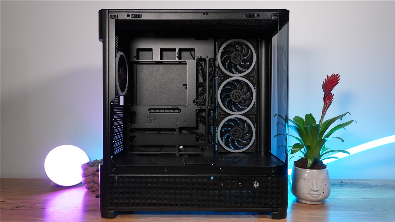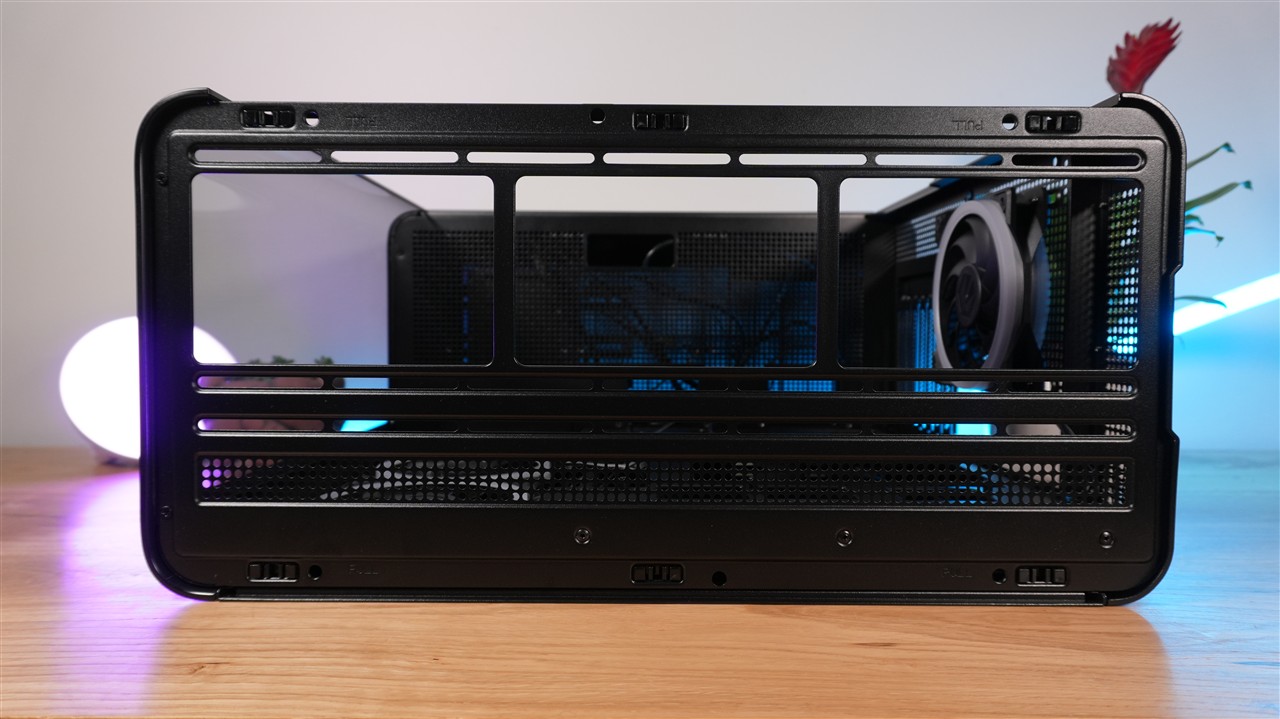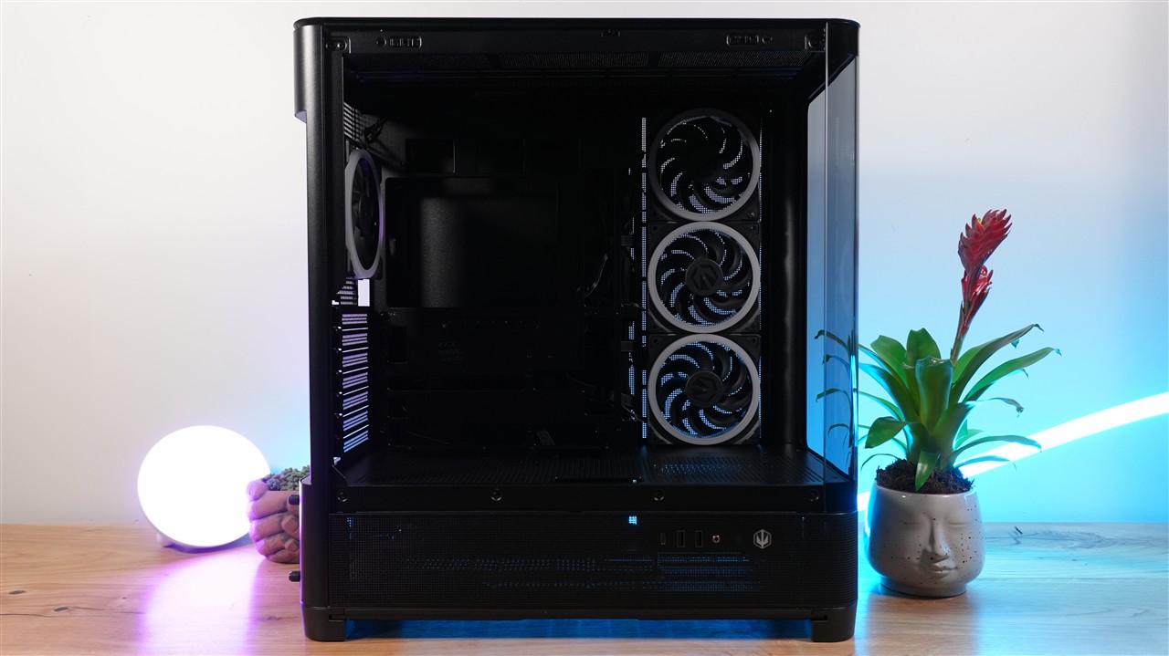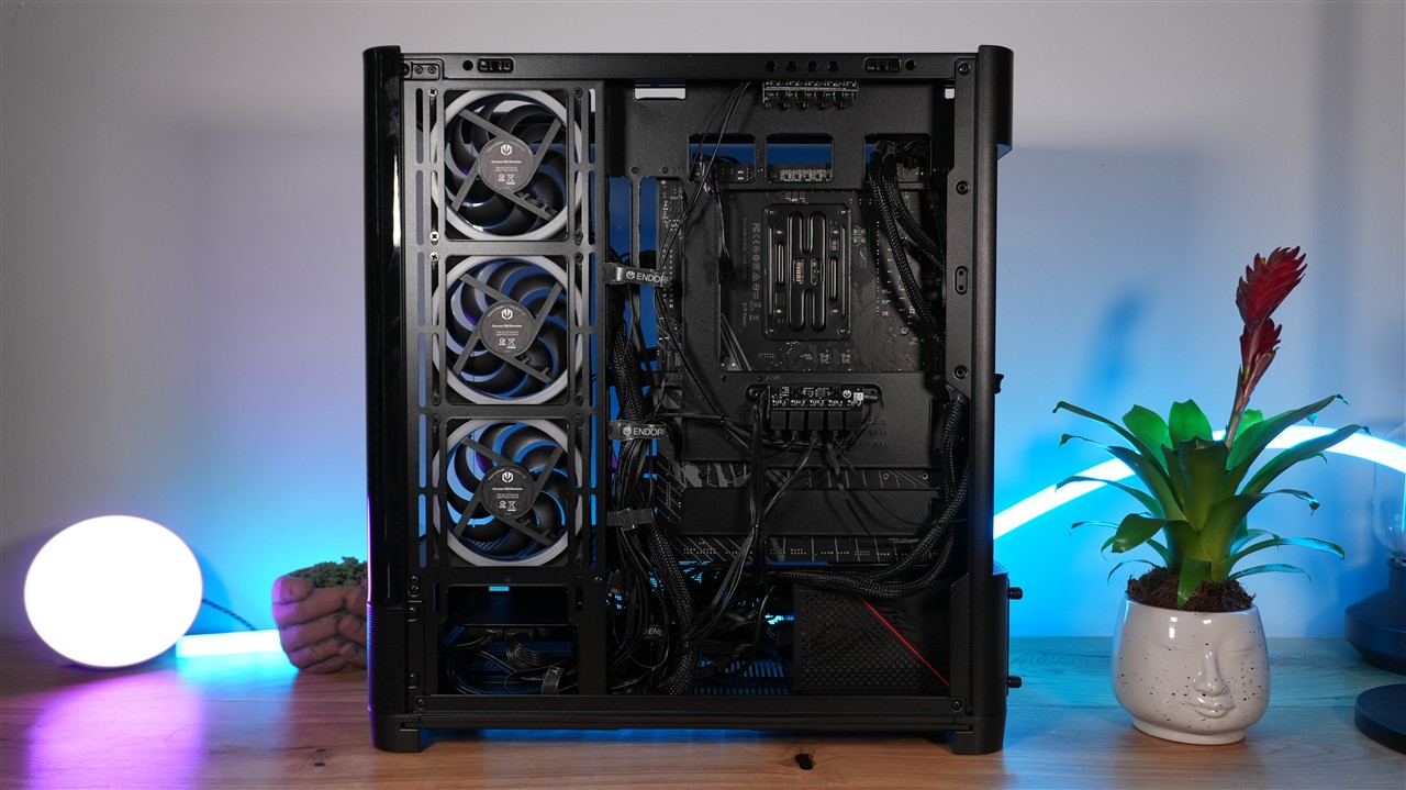Szkoda tylko, że potencjał tych wentylatorów jest w pewnym sensie marnowany. Trzy sztuki umieszczone na boku wieją na szkło hartowane, zamiast na podzespoły. W praktyce więc mogą to być dobre wentylatory, tylko z bardzo niekorzystnym rozmieszczeniem.