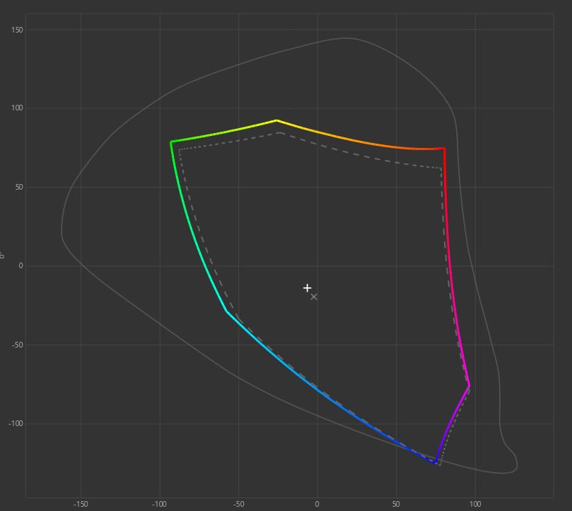 Kolorymetr potwierdza pełne pokrycie przestrzeni barw sRGB, gdyż wynosi ono 99,7%, przy całkowitej objętości równej 107,3%. Dla przestrzeni Adobe RGB pomiary wskazały odpowiednio 72,7% i 74%, a w przypadku gamutu DCI-P3 75,8% oraz 76%. Są to naprawdę przyzwoite wyniki, a jak na laptop do gier trzeba uznać je nawet za dobre. Tym bardziej że złego słowa nie można też powiedzieć o fabrycznej kalibracji i średni błąd Delta E wynosi w testowanym egzemplarzu zaledwie 1,56. Temperatura barwowa to 6430 K, co oznacza praktycznie neutralną biel. Jeśli zaś chodzi o maksymalną jasność, to zanotowaliśmy 347,5 nitów, co również uznajemy za dobry wynik. Jednorodność podświetlenia także prezentowała się w naszym egzemplarzu ponadprzeciętnie i tzw. bleeding praktycznie w ogóle nie był dokuczliwy. W ostatecznym rozrachunku wyświetlacz w Aorus 17 uznajemy za bardzo dobry, w szczególności pod kątem gamingowych zastosowań, ale mimo wszystko żałujemy, że producent nie oferuje opcji QHD, gdyż przy 17 calach widać pojedyncze piksele w rozdzielczości 1080p.