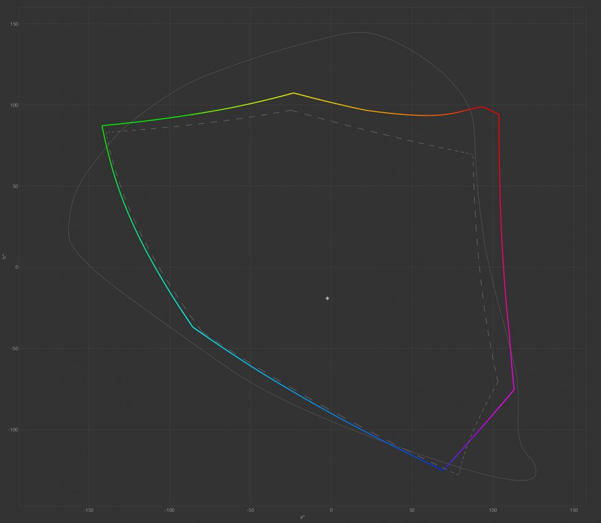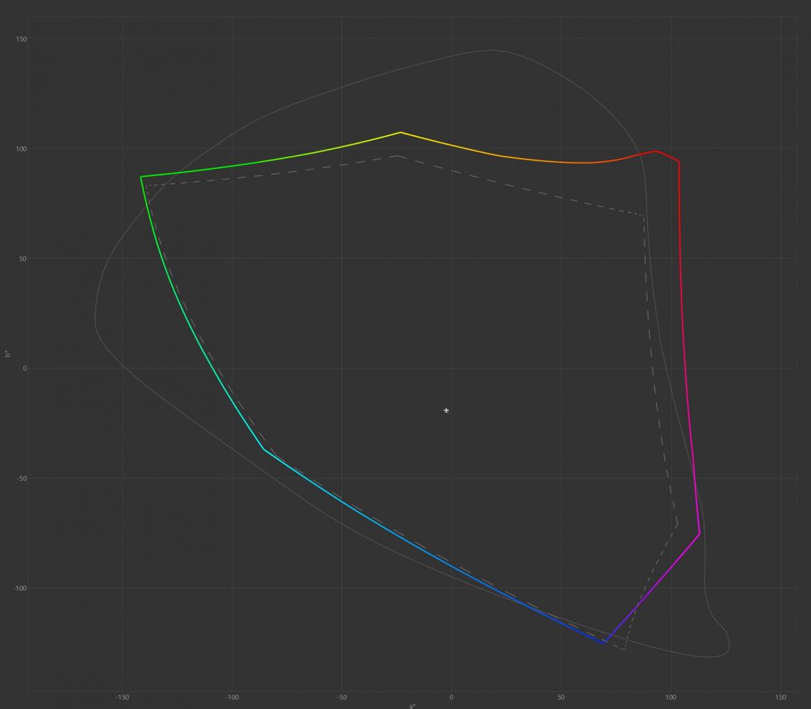 Uruchamiając monitor po raz pierwszy raczeni jesteśmy energooszczędnym trybem Green, dlatego zdecydowaliśmy się na przeprowadzenie testów przełączając się na tryb Standard z ustawieniem jasności na poziomie 50%, co przekłada się w tym przypadku na aż 414,3 cd/m² oraz 0,0863 cd/m², odpowiednio dla bieli oraz czerni. Daje to kontrast statyczny na poziomie 4801,9:1, co nawet jak na panel VA jest świetnym rezultatem. Temperatura barwowa przy domyślnych ustawieniach kształtuje się na poziomie 6809K, co daje nieco ochłodzoną biel, choć bliską neutralnej wartości 6500K. Średni błąd Delta E to tylko 1,16, co jak na monitor dla graczy, gdzie dąży się do rezultatów poniżej wartości 3,00, jest świetnym wynikiem - ba, to już praktycznie poziom sprzętu dla profesjonalistów. Zastrzeżeń nie mamy także co do przebiegu gammy lokalnej w testowanym monitorze przy domyślnych ustawieniach Gamma 2.2. Tym samym, mając na uwadze bardzo szeroki gamut oraz naprawdę dobrą fabryczną kalibrację monitora, Aorus FV43U można śmiało polecić także do profesjonalnych zastosowań, choć z dwoma zastrzeżeniami. Pierwszy to oczywiście rozmiar, który nie jest najbardziej praktyczny, a drugi to fakt, że otrzymujemy tu matrycę 8bits+FRC, a nie z natywnie 10-bitową głębią kolorów. Warto też odnotować, że fabryczna kalibracja przeprowadzona została pod sRGB i po przełączeniu na Adobe RGB i DCI P3 średni błąd Delta E będzie większy (odpowiednio 2,81 i 3,01). Poza tym, oprócz możliwości wyboru gamutu, producent przygotował także profil sRGB, który wypada całkiem nieźle (średni błąd Delta E to 1,25, kontrast 4540,4:1, a jasność 165 nitów), ale wymaga korekty temperatury barwowej (7217K), która jest zbyt wysoka.