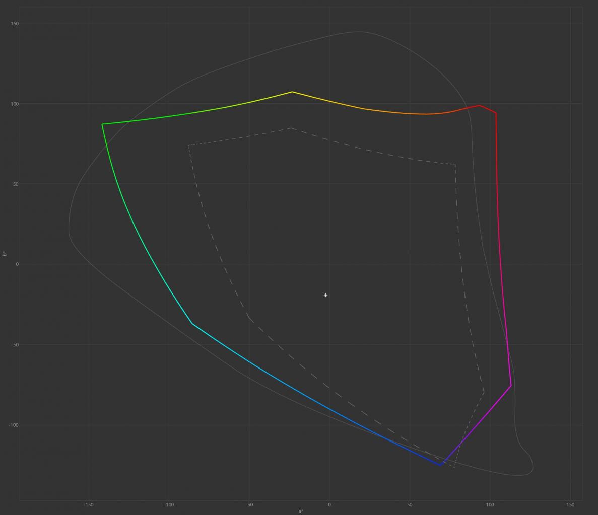 Pokrycie przestrzeni: od lewej sRGB, Adobe RGB i DCI P3 (kliknij, aby powiększyć)