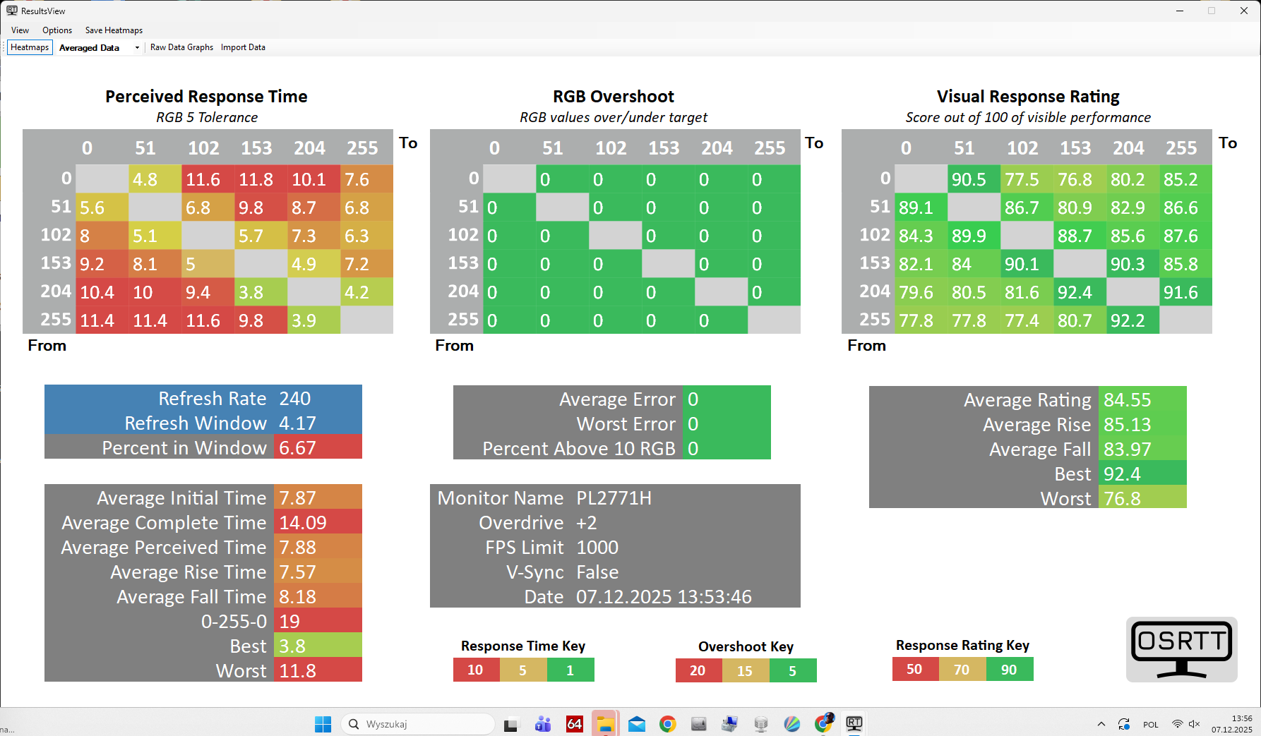 Monitor skierowany jest do graczy, dla których szybkość reakcji i minimalne opóźnienia mają kluczowe znaczenie, szczególnie w dynamicznych tytułach sieciowych. Dlatego też cieszy fakt, że iiyama G-Master GB2771HSU-B1 Red Eagle pochwalić może się niskim input lagiem. Średni zmierzony input lag wynosi tylko 2,9 ms, a więc jest na tyle niski, że w praktyce pozostaje całkowicie nieodczuwalny. Oznacza to, że monitor nie wprowadza zauważalnych opóźnień pomiędzy akcją wykonywaną przez użytkownika a jej wyświetleniem na ekranie.