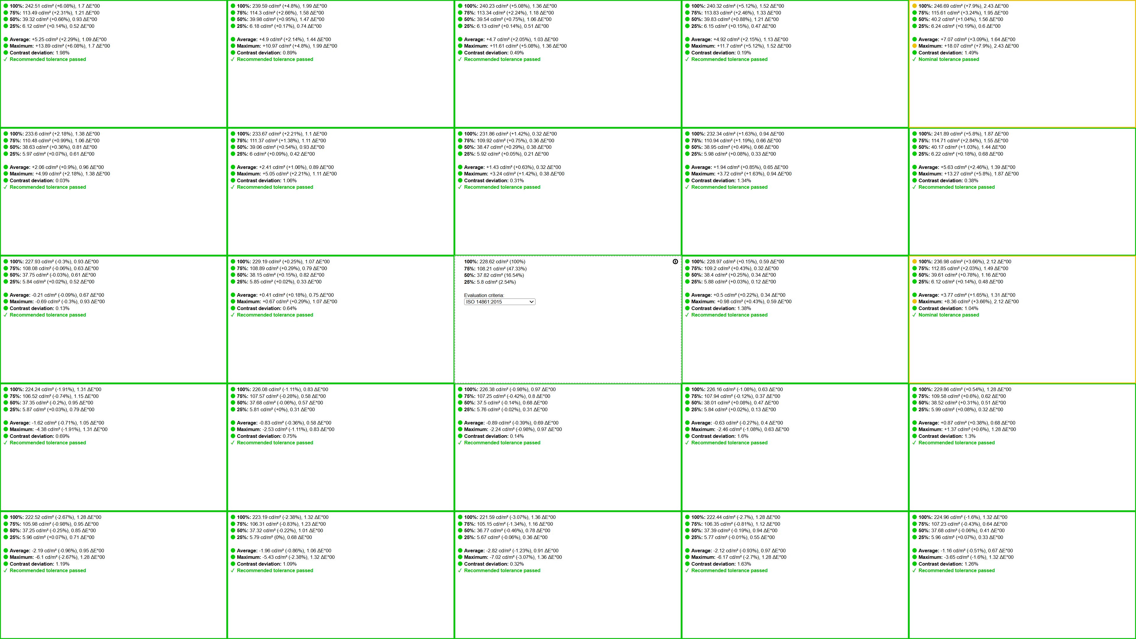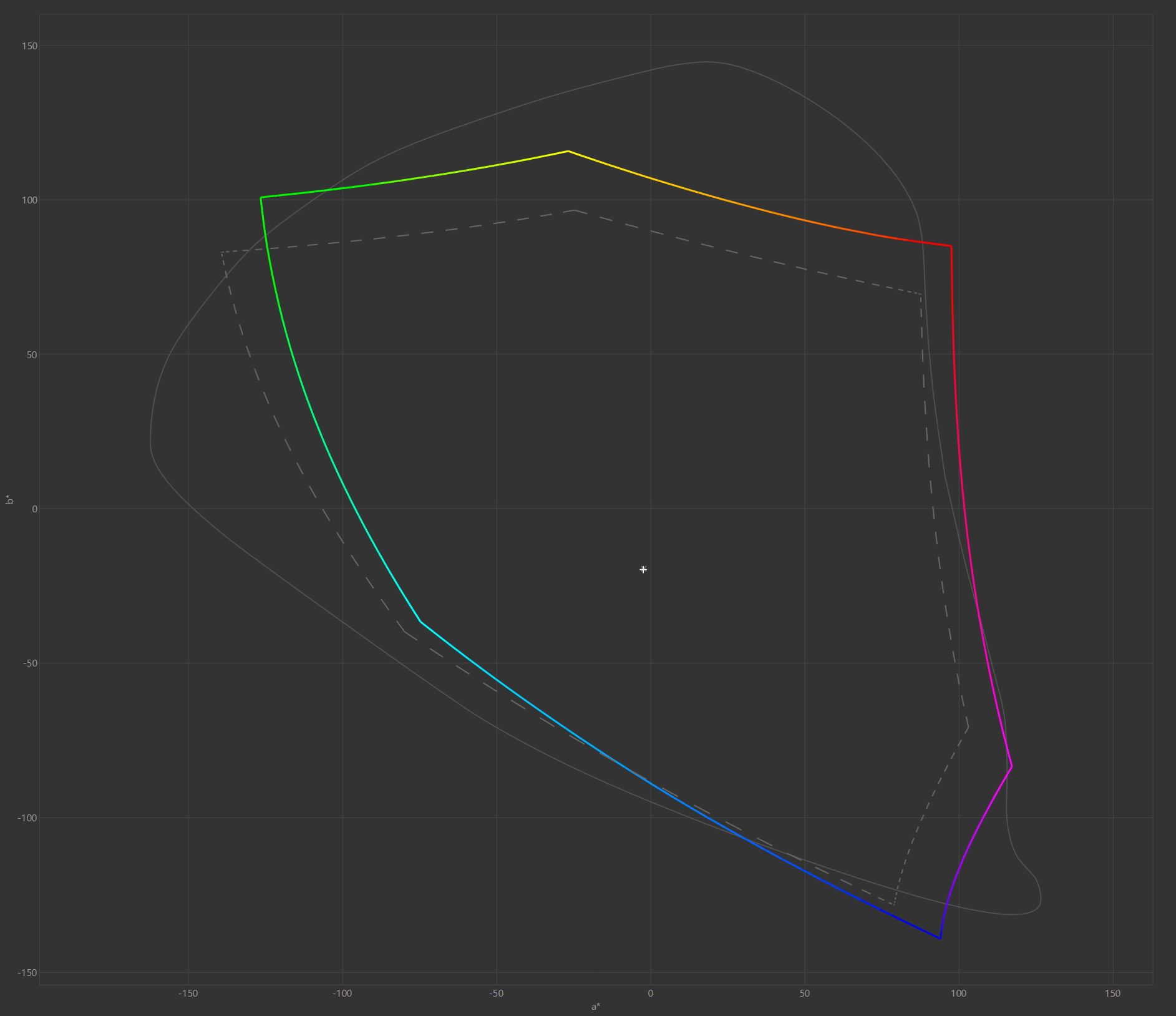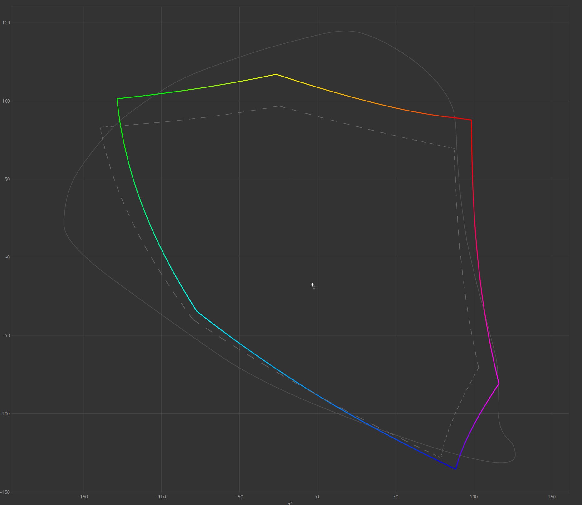 Choć ProGraphic HB3201UHSNP-B1 i ProGraphic HB2701UHSNP-B1 to monitory skierowane do grafików, to jednak są to raczej niedrogie modele, co wiąże się z pewnymi ograniczeniami. Nie znajdziemy tu zatem prawdziwie 10-bitowych matryc, a jedynie 8-bitowe (choć zdolne do 10-bitowego przetwarzania za sprawą techniki FRC. Niemniej jednak, pochwalić mogą się ona naprawdę szerokim gamutem, bo w obu przypadkach otrzymujemy przeszło 160% objętości w sRGB, ponad 110% dl Adobe RGB i ok. 115% dla DCI-P3. Wyniki możecie sprawdzić w tabeli poniżej, ale nie ma mowy o żadnym zawodzie, bo to rezultaty na podobnym poziomie, który widzimy w nowoczesnych OLED-ach. Co więcej, możliwość emulacji każdej z tych przestrzenii (a także wielu innych) sprawia, że możemy uniknać przesadnej cukierkowości i uzyskać bardziej naturalny efekt.