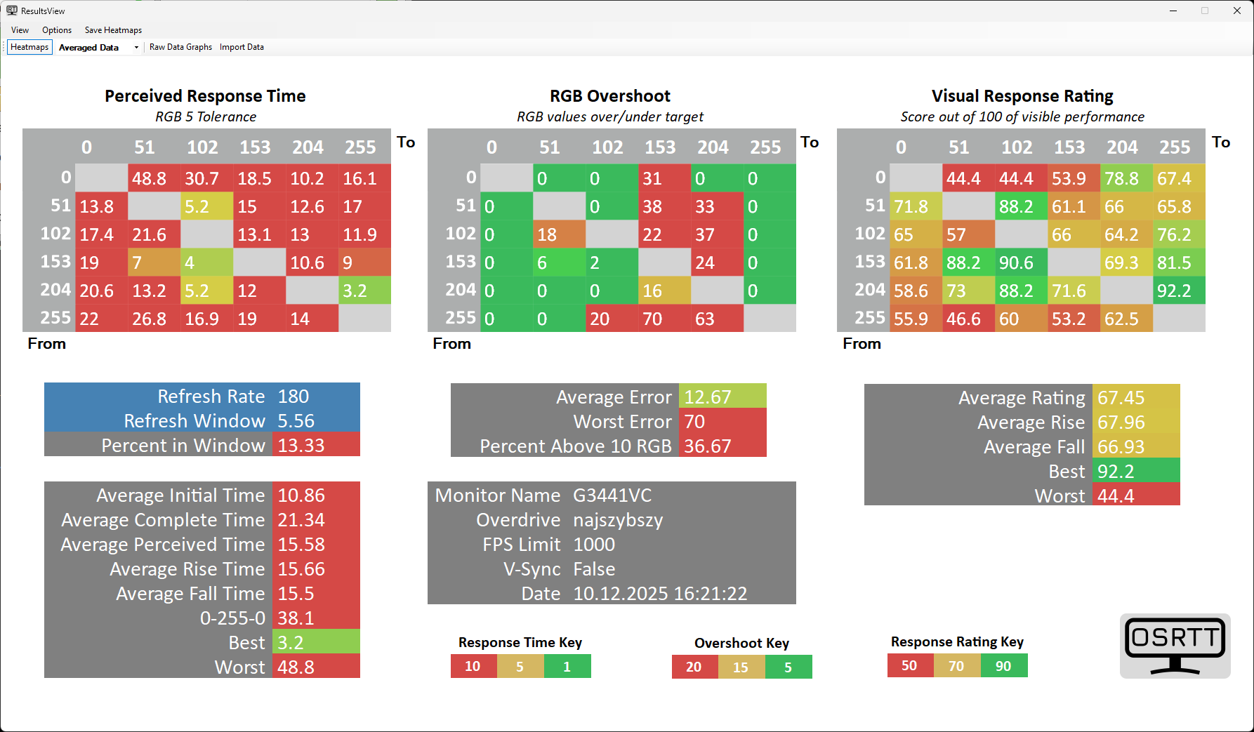 Nie ma co owijać w bawełnę, zmierzone przez nas czasy reakcji plamki w standardzie GtG nie wyglądają najlepiej. Ostrość obrazu w ruchu rzeczywiście jest obarczona smużeniem, czego w sumie nie da się uniknąć w wyświetlaczach VA, ale testowaliśmy już znacznie szybsze monitory korzystające z tej technologii. Zmierzony przez nas za pomocą narzędzia Open Source Response Time Tool (OSRTT) czas reakcji wynosi w tym przypadku blisko 17 ms na najlepszym ustawieniu overdrive (szybki), bo jego najwyższy poziom wprowadza już bardzo wyraźny overshoot.