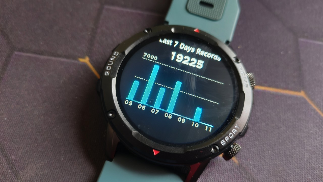 Zestaw funkcji jest naprawdę rozbudowany jak na tę cenę: krokomierz, SpO2, puls, ciśnienie, jakość snu, nawodnienie, a do tego powiadomienia, obsługa połączeń i SMS-ów przez wbudowany mikrofon i głośnik. Wszystko działa poprawnie i bez fajerwerków. Pomiary aktywności fizycznej warto traktować orientacyjnie: podczas biegów odnotowywałem różnicę rzędu 200 metrów na 6 kilometrach w stosunku do Stravy na telefonie. Nie jest to dramat, jeśli zależy nam wyłącznie na ogólnej motywacji do ruchu, ale do poważniejszego treningu ten sprzęt nie wystarczy.