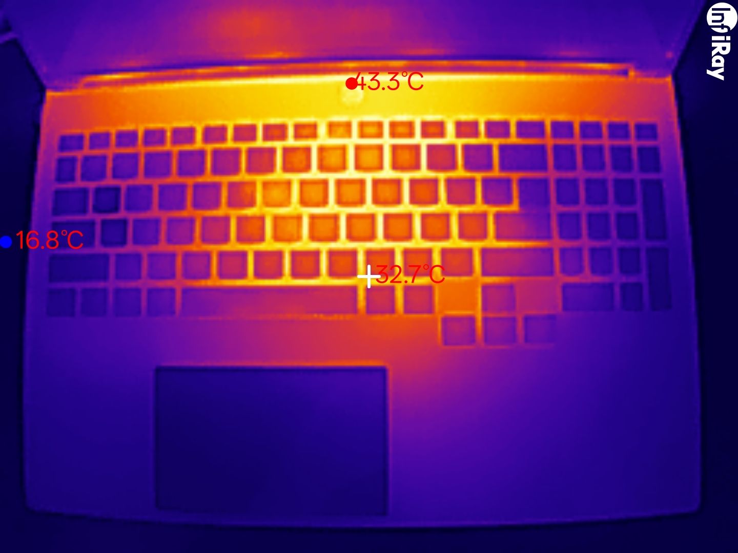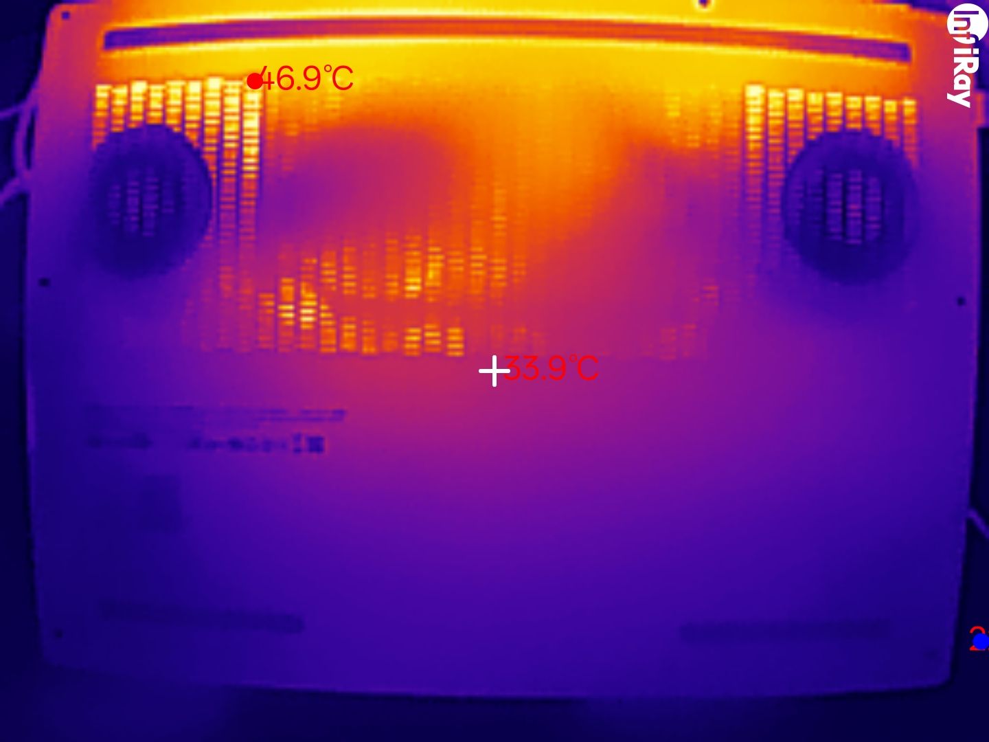 Jeśli jesteśmy już przy temperaturach, to obudowa Lenovo Legion 7 16IAX10 nie nagrzewa się przesadnie, co jest zaskoczeniem, patrząc na temperatury komponentów. W przypadku tylnego panelu nie została złamana granica 50°C. Laptop nie należy za to do cichych, bo w trybie maksymalnej wydajności, kiedy wentylatory pracują na pełnych obrotach, generuje hałas rzędu 51,3 dBa, co oznacza, że podczas grania raczej nie obejdzie się bez słuchawek.