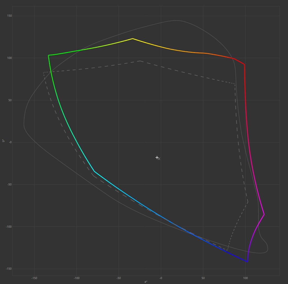 Przypominamy, że mamy tu do czynienia z prawdziwie 10-bitowym panelem, a producent obiecuje niemal pełne, bo 99,5% pokrycie gamutu DCI-P3 (CIE1976). Wyniki spełniają oczekiwania, bo zgodność z przestrzenią sRGB jest pełna (100%), przy całkowitej objętości gamutu równej aż 173,4% sRGB. Dla standardu Adobe RGB wartości te wynoszą odpowiednio 92,4% i 119,5%, natomiast dla DCI-P3 99,9% i 122,9%. Monitor rzeczywiście może pochwalić się bardzo szerokim gamutem, istotnym choćby z punktu obsługi HDR, a w tym wypadł nie tylko wyraźnie lepiej niż modele wyposażone w poprzednie generacje paneli WOLED, ale praktycznie na jednym poziomie z topowymi matrycami QD-OLED, które dotychczas miały przewagę w tym aspekcie. Co więcej, producent przygotował w OSD tryb sRGB, dzięki któremu unikniemy przesaturowania sprawiającego, że obraz jest bardzo cukierkowy (choć spora część użytkowników lubi ten efekt).