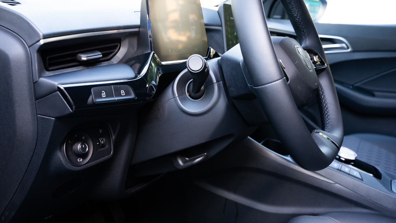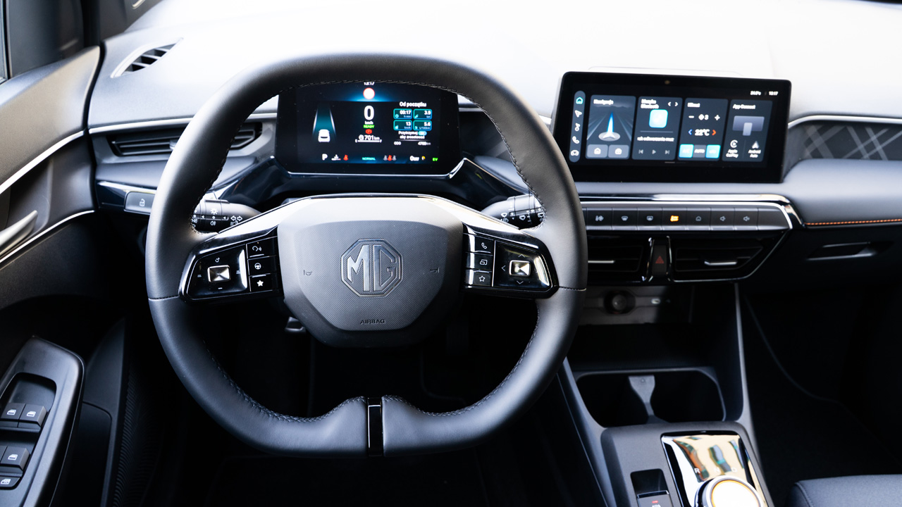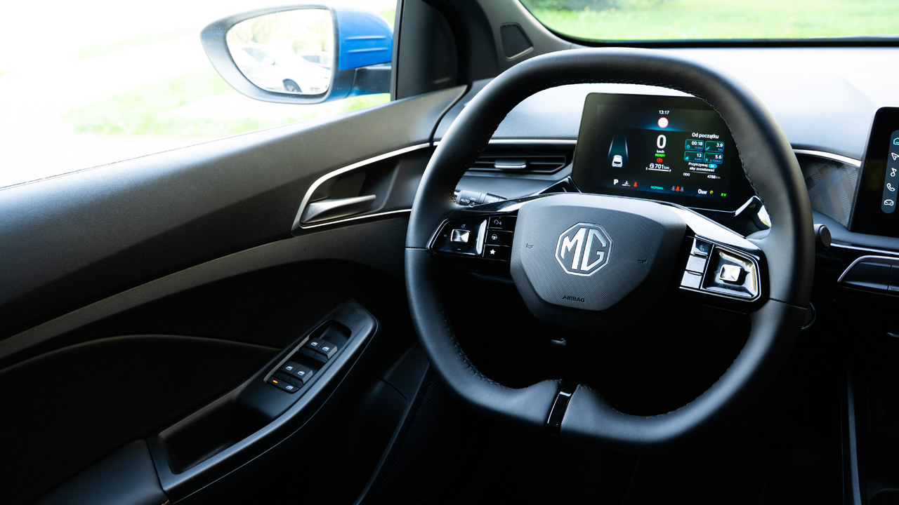 Gdzie widoczne są oszczędności? Oprócz detali pokroju braku dzielonej kanapy z tyłu, czy niedostatecznego oświetlenia z tyłu kabiny, za najistotniejsze należy uznać dwie kwestie. Po pierwsze całkowity brak możliwości dopasowania kierownicy na długość, co skutkuje niewłaściwą pozycją siedzącą dla wyższych kierowców, a w konsekwencji niekomfortowym podróżowaniem na dłuższą metę – zwłaszcza dla wyższych kierowców. Po drugie: elektroniczne systemy bezpieczeństwa niewystarczająco dobrze pilnują stabilności samochodu mocnego przyspieszania i gwałtownego hamowania w zakręcie. MG3 Hybrid+ okazuje się nerwowe, jeśli zdarzy się wejść w zakręt trochę za szybko. To powinno zostać poprawione.