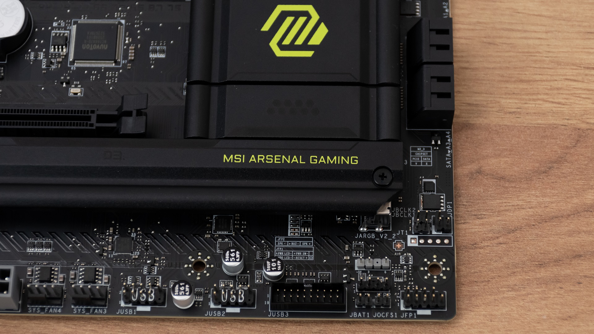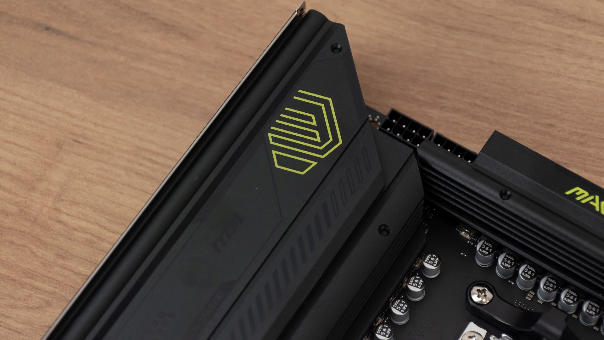 Radiatory sekcji i chipsetu zostały przymocowane za pomocą śrubek, co jest dobrym posunięciem. Poza większą trwałością materiału, taki sposób instalacji to także szybszy i zdecydowanie łatwiejszy demontaż, co zaoszczędzi nerwów potencjalnemu nabywcy. Pod tym względem plus dla inżynierów firmy MSI, tym bardziej, że to nie koniec udogodnień, gdyż pierwszy radiator M.2 zdejmujemy oraz zakładamy beznarzędziowo i to samo dotyczy instalacji nośników, a do blokowania oraz zwalniania zatrzasku karty graficznej jest przycisk. Przy czym dolny radiator M.2 w dalszym ciągu jest przykręcony śrubkami, więc w jego przypadku bez śrubokrętu się nie obejdzie.
