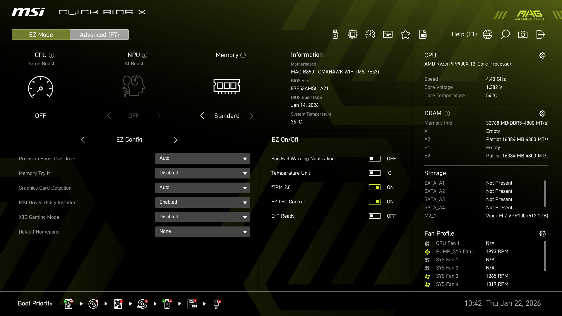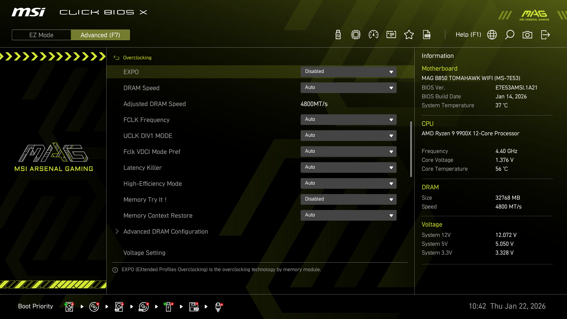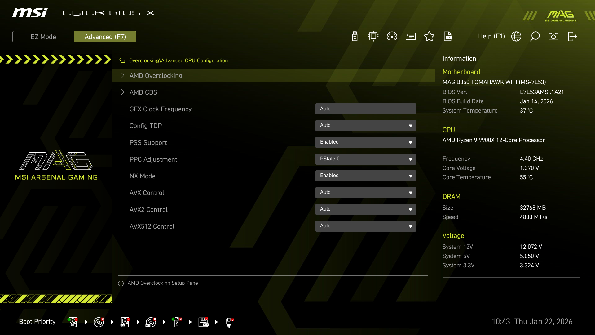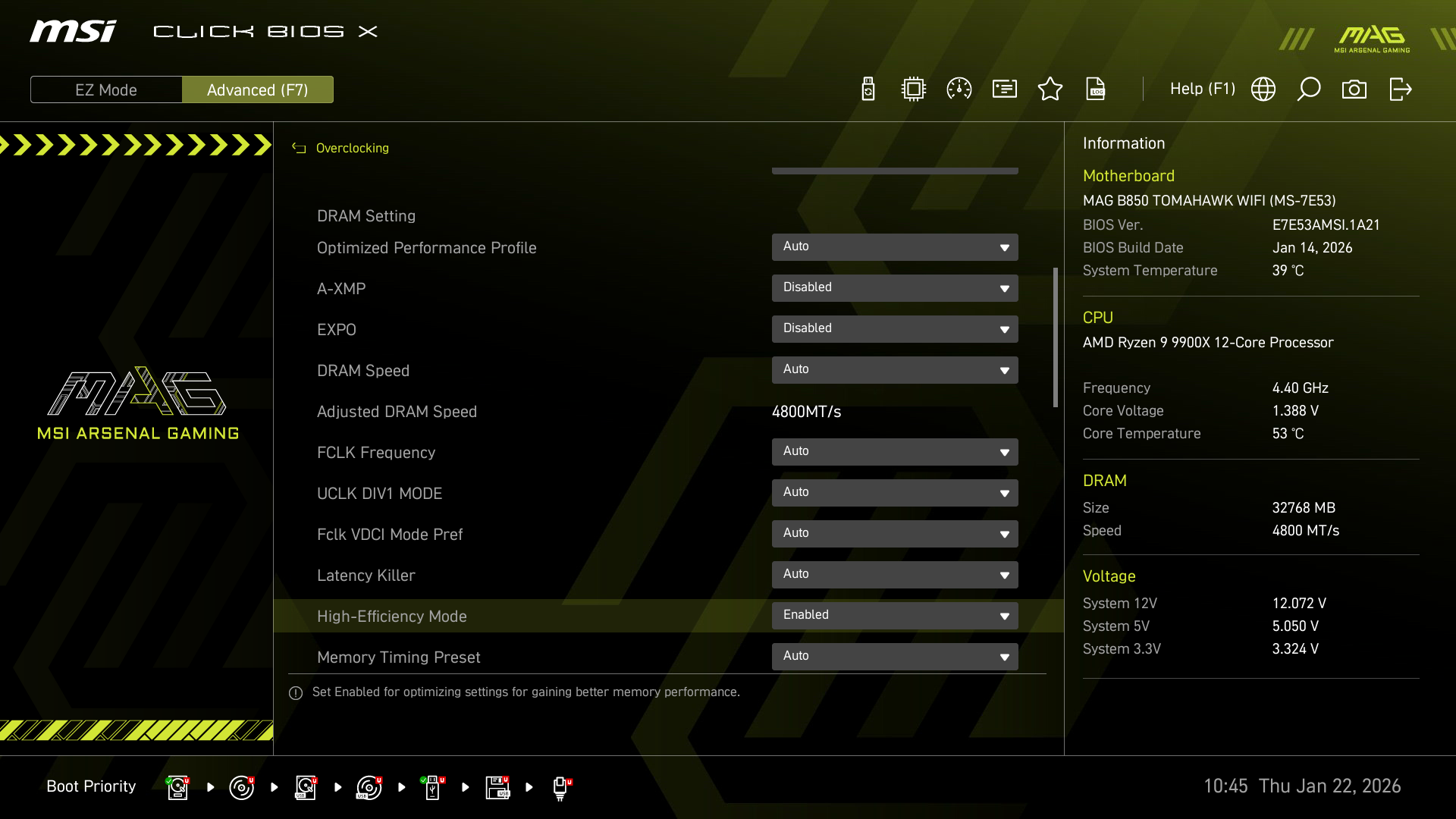Test MSI MAG B850 TOMAHAWK WIFI: UEFI