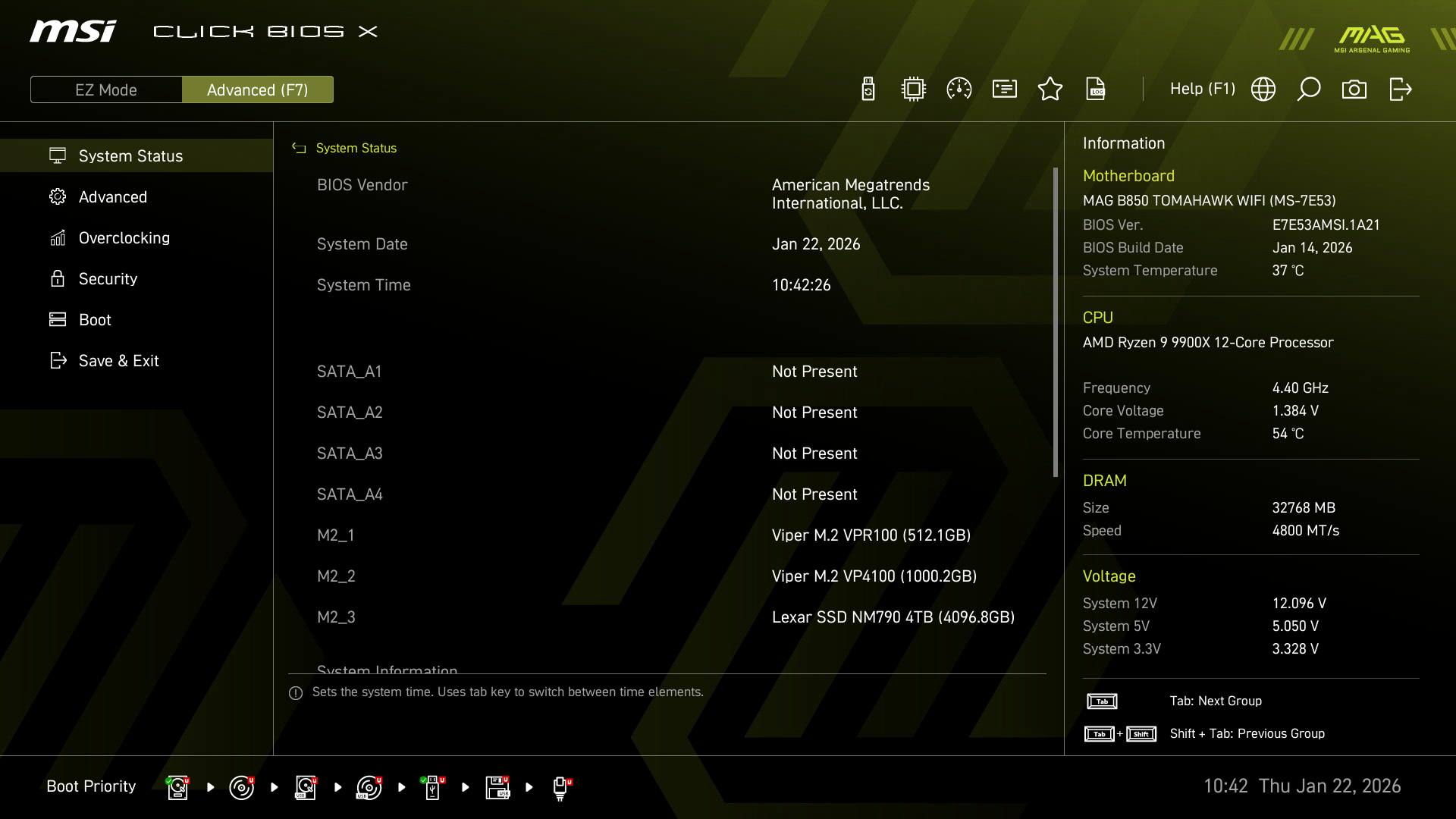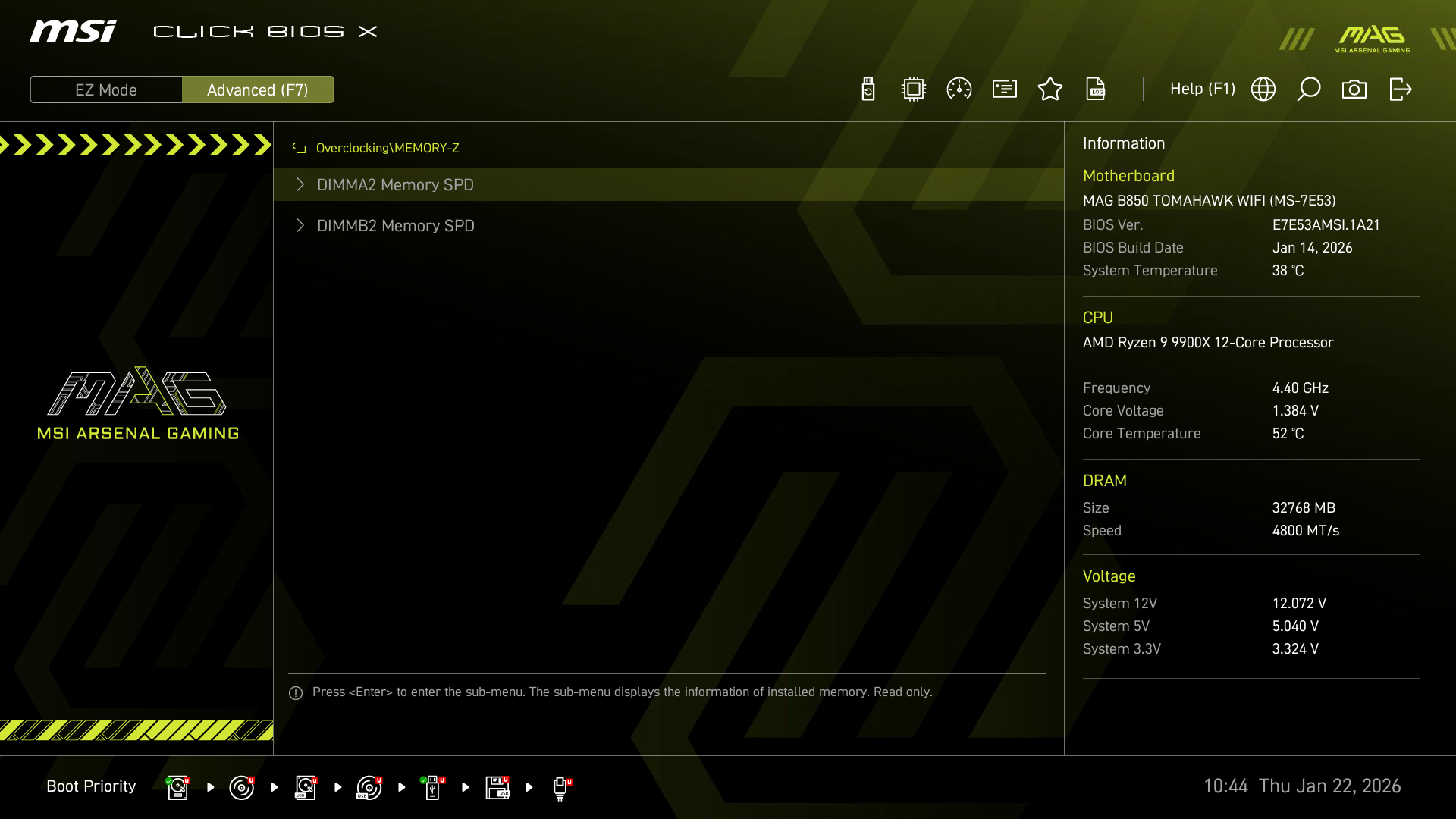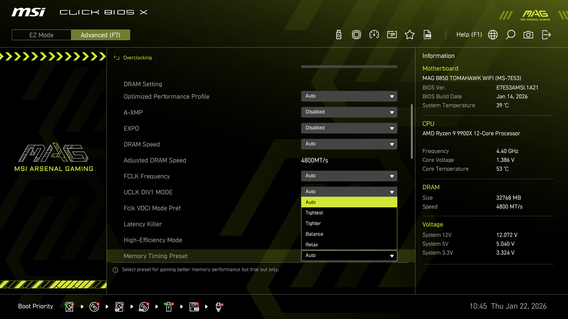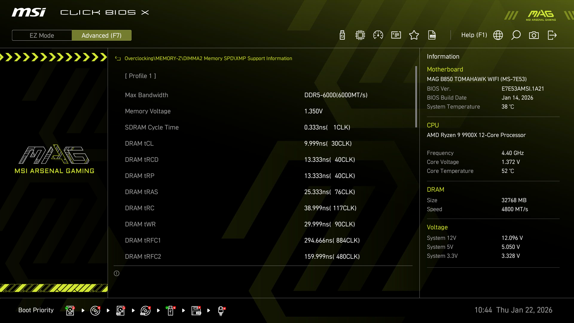 Test MSI MAG B850 TOMAHAWK WIFI: UEFI