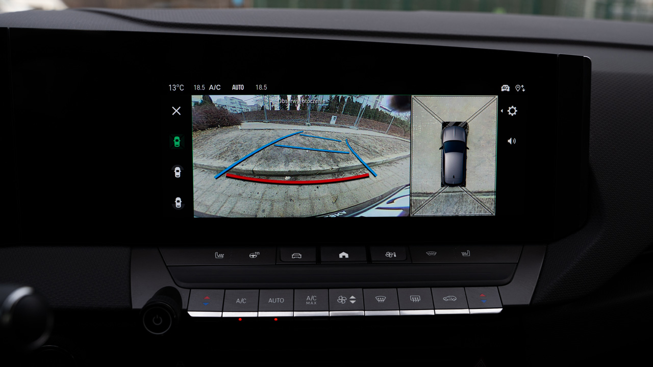 W omawianej wersji Opla Astry – Business Edition – nie mamy kompletnego wyposażenia w zakresie systemów bezpieczeństwa i wsparcia kierowcy, ale narzekać zdecydowanie nie można. Oprócz obowiązkowych elementów jest bowiem adaptacyjny tempomat oraz układ utrzymania na zajmowanym pasie ruchu, a to oznacza, że możemy liczyć na podstawową pomoc np. na autostradzie. Obecna jest też tylna kamera 180°. To wystarczy.