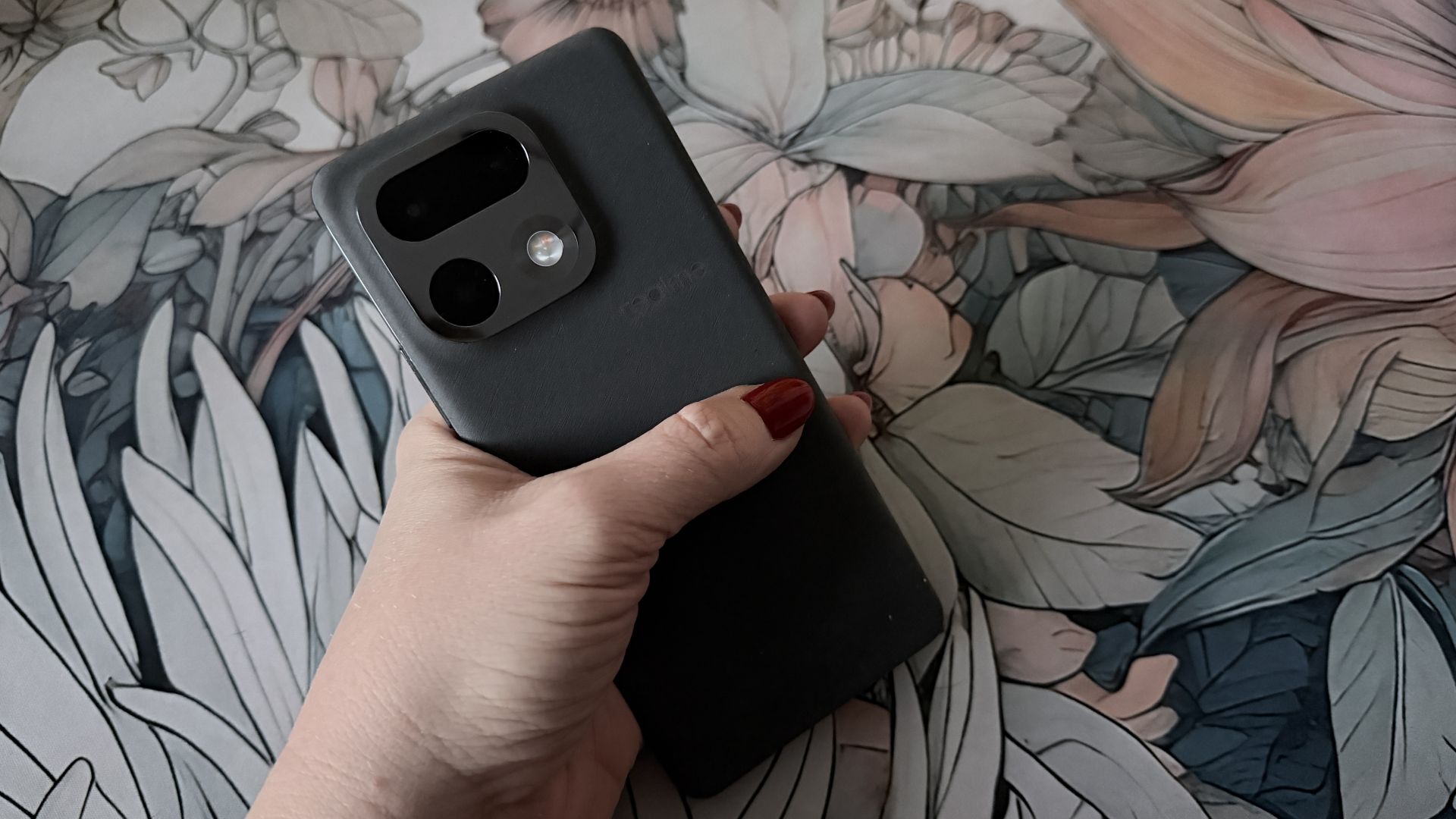 Co prawda nie doszukiwałabym się tu "jedwabistej gładkości kamyków wygładzonych przez wodę", którymi rzekomo inspirowana jest szara wersja kolorystyczna Master Grey (jest jeszcze Master Gold), ale jak to przy współpracy realme z Naoto Fukasawą, natura musiała się pojawić. Również w stosowanych procesach produkcyjnych, jak i materiałach - wspomniane milusie plecki to zasługa biopolimerów organicznego pochodzenia, co może trafić w gust wielu użytkowników. Podobnie zresztą jak fakt, że tylny panel jest tym samym wolny od odcisków palców… a że uwielbia za to wszelkie pyłki, a mazanie nadrabiają za niego ramka i wyspa aparatów, to już inna historia.