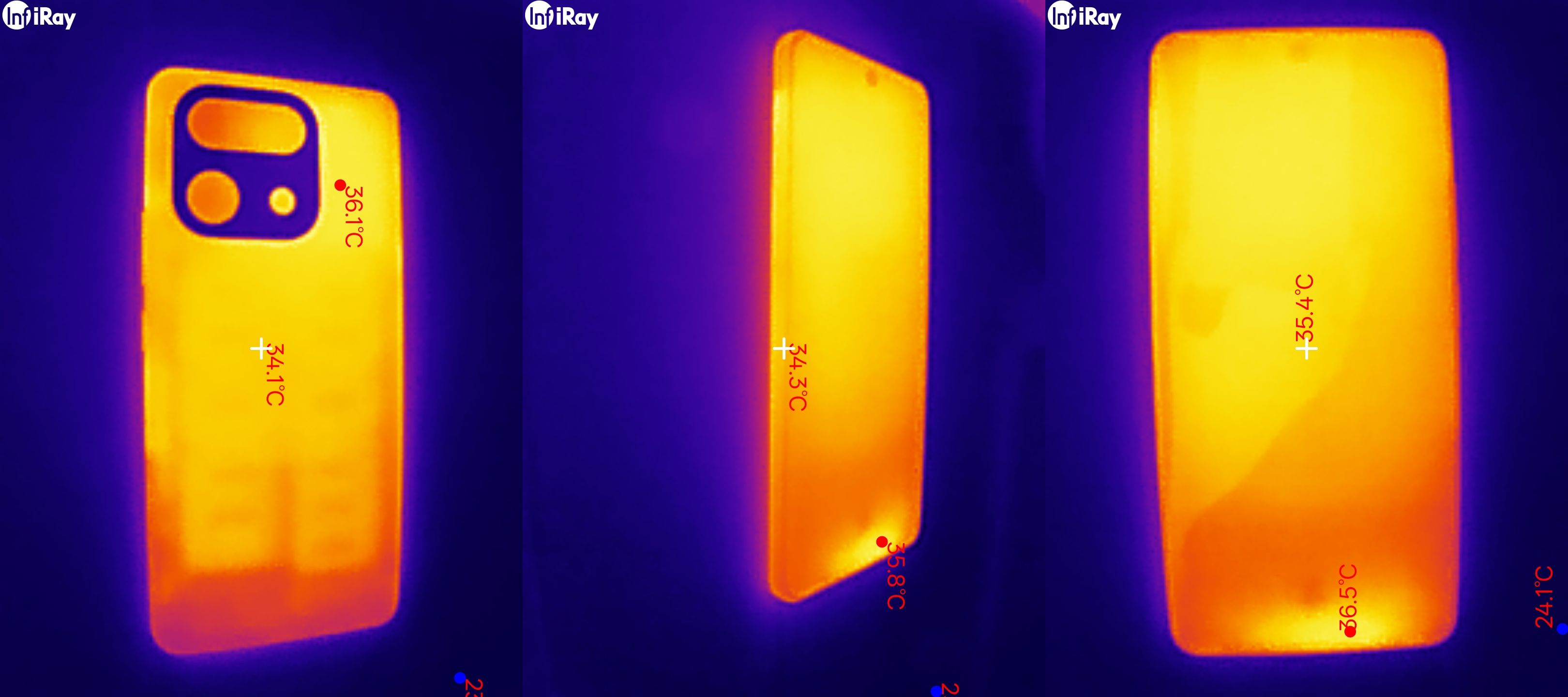 Również za sprawą wyższej temperatury, bo bateria i CPU w spoczynku mierzą odpowiednio 35 i 31 stopni, przy ok. 70% benchmarku AnTuTu obudowa urządzenia nagrzewa się do 36,1 stopnia, by po jego zakończeniu temperatura baterii wyniosła 35,3 stopnie, a CPU 49 stopni. Z drugiej strony smartfon nie cierpi zbytnio z powodu throttlingu termicznego, bo podczas 15-minutowego testu w CPU Throttling Test jego wydajność spadła do 90%.