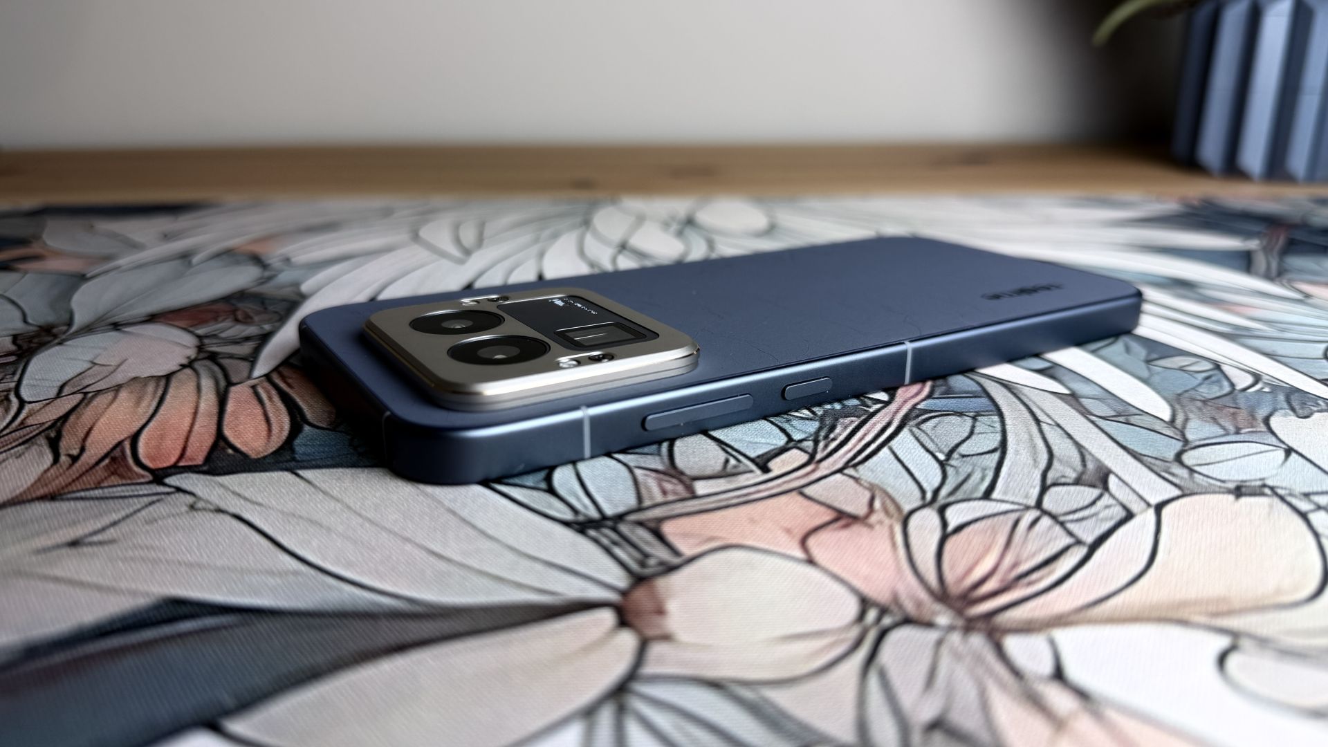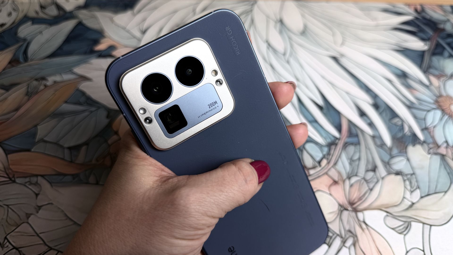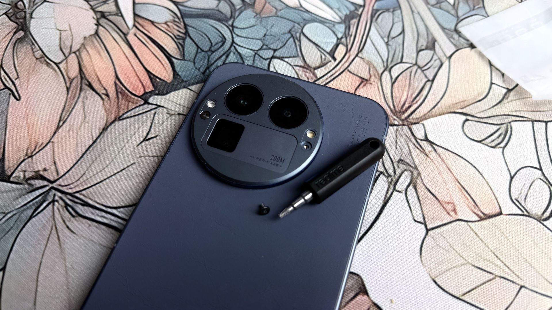 Jest też inny problem, a mianowicie pomysł wymiennych nakładek na aparaty zakłada zarówno okrągłe, jak i kwadratowe modele, więc potrzebujemy co najmniej dwóch etui ochronnych. A jeśli zdecydujemy się zaprojektować dla siebie własną wyspę o nieregularnych kształtach, to w ogóle tę formę ochrony mamy z głowy. Ale może to dobrze? Bo realme GT 8 Pro wygląda zdecydowanie lepiej bez etui, niebieska wersja kolorystyczna Urban Blue z tylnym panelem ze "skóry jak papier" (połączenie papieru makulaturowego i poliestru, który ma zapewniać trwałość i ochronę przed zużyciem, poddane farbowaniu i innej obróbce), naprawdę cieszy oko i zapewnia w dotyku efekt zamszu. Telefon wyróżnia się dzięki temu z tłumu innych, nie ma tendencji do zbierania odcisków palców, a do tego świetnie leży w dłoni, pomimo że mamy do czynienia z dużym urządzeniem o wymiarach 161.80 x 76.87 x 8.3 mm i wadze 214 gramów.