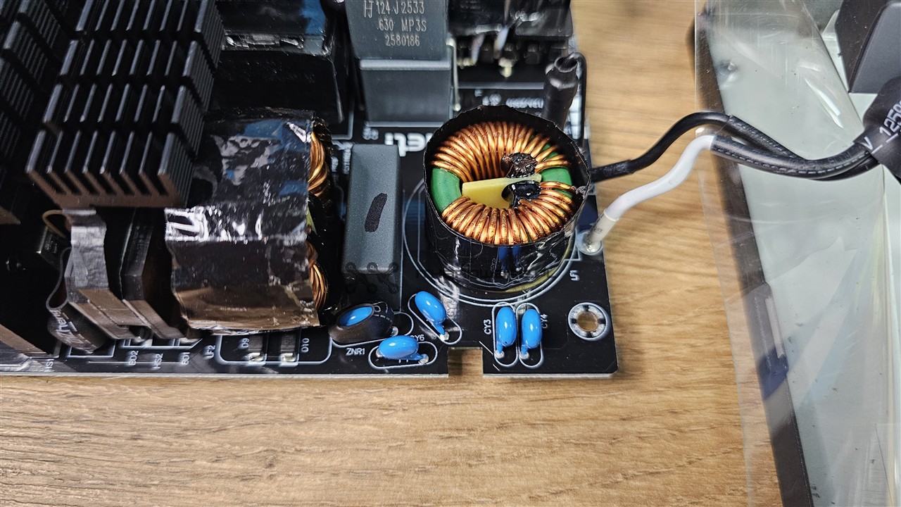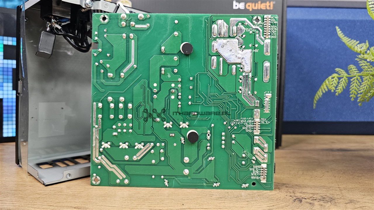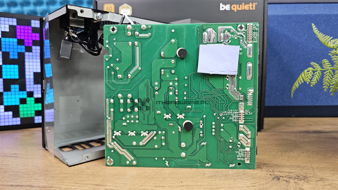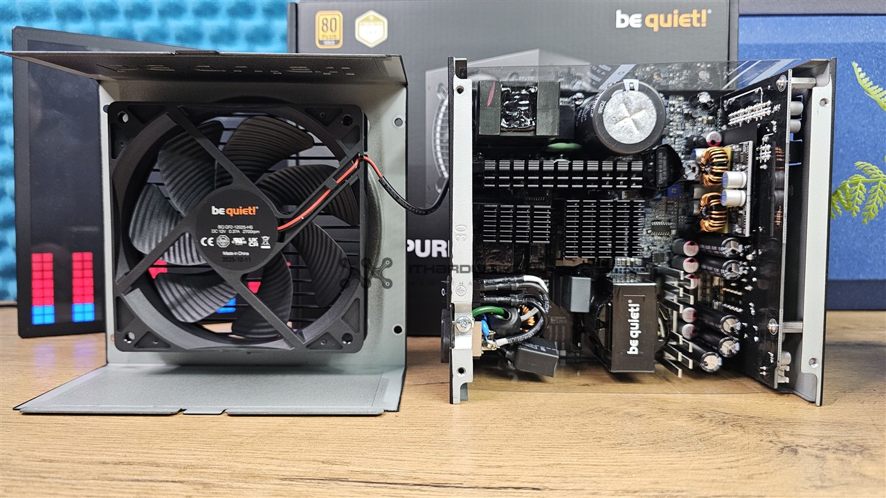 W Pure Power 13 M 1200 W to przede wszytskim zmiana fabryki i platformy OEM, ponieważ za produkcję modelu o mocy 1200 W odpowiada CWT, a nie FSP jak słabszych modelach. Rozmieszczenie elementów jest przemyślane, tak by kluczowe podzespoły były efektywniej chłodzone. Producent unika umieszczania nagrzewających się elementów bezpośrednio pod silnikiem wentylatora. Zamiast tego środkiem mamy duży kanał z radiatorami sekcji pierwotnej. Teoretycznie powinno to zapewnić dobrą termikę, ale ostatecznie zweryfikuje to dopiero kamera termowizyjna.