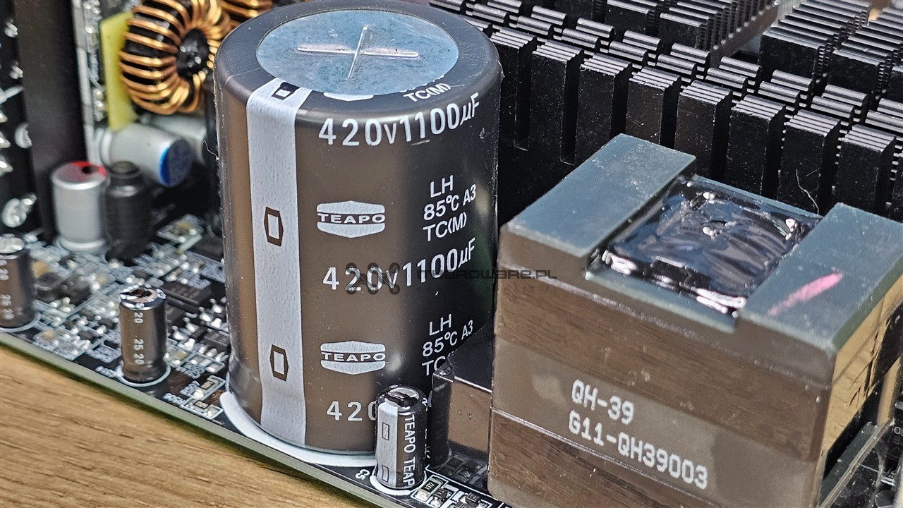 Lista komponentów potwierdza wysoką jakość zastosowanej elektroniki, w tym markowe tranzystory oraz kontrolery marki Champion, a także tajwańskie kondensatory elektrolityczne Teapo oraz aluminiowo-polimerowe marki Teapo oraz Elite.