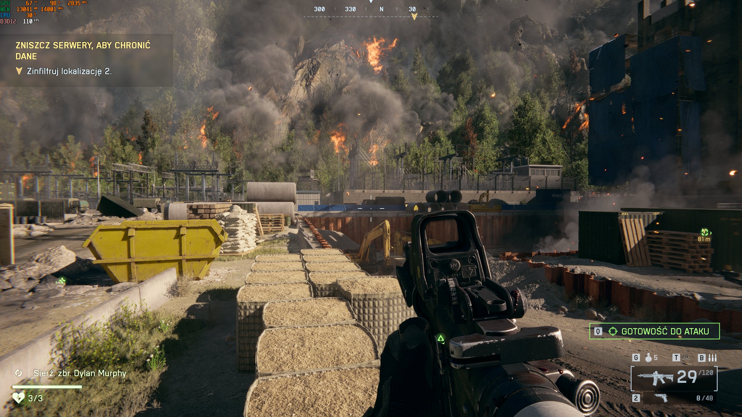 Przy czym pamiętajcie, że do wyższych mnożników, a więc MFG x3 lub x4, naprawdę warto mieć wysoki bazowy FPS (najlepiej minimum 120), aby uniknąć wyraźnych artefaktów wokół elementów HUD. Stąd chcąc przechodzić kampanię w 4K z GPU klasy GeForce RTX 5070 Ti, lepiej pozostać przy FG x2. Z uwag technicznych odnośnie gry Battlefield 6 warto jeszcze wspomnieć o Reflex, tzn. technice NVIDII, która ma zmniejszać opóźnienie systemowe, jednak w wersji przedpremierowej nie bardzo działała, jako że latencja z Reflex była nawet minimalnie wyższa niż bez. Ale ogólnie najnowsza gra studia EA DICE od strony technicznej wygląda solidnie, oferując ładną grafikę przy sensownych wymaganiach sprzętowych, a dzięki technikom zielonych można dodatkowo wyraźnie podnieść FPS i poprawić jakość oprawy. Być może po premierze, za sprawą łatek, będzie jeszcze lepiej, ale to już czas pokaże.