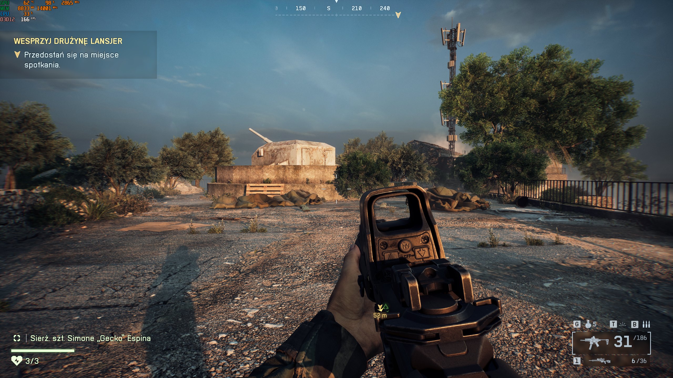W temacie technikaliów warto podkreślić, że Battlefield 6 korzysta z autorskiego silnika Frostbite w usprawnionej wersji, nieoficjalnie nazywanej Frostbite 4. Dostępne API jest tylko jedno, DirectX 12, tj. zgodnie z oczekiwaniami, gdyż Battlefield V co prawda obsługuje także DirectX 11, jednak kolejna część, Battlefield 2042, porzuciła starsze rozwiązanie, więc trudno było oczekiwać, że tu będzie inaczej. Przy czym śledzenia promieni nie ma, przynajmniej w wydaniu przedpremierowym, co jest pewnym zaskoczeniem, gdyż dwie wymienione przed chwilą starsze gry z serii wykorzystują RT na potrzeby odpowiednio odbić oraz okluzji otoczenia. Z drugiej strony jest komplet technik skalowania obrazu, jako że twórcy zaimplementowali DLSS 4 od NVIDII, FSR 3.1 od AMD oraz XeSS 2 od Intela. Do dyspozycji są też generatory klatek od wspomnianych producentów układów graficznych, które pozwolą jeszcze bardziej zwiększyć liczbę FPS.