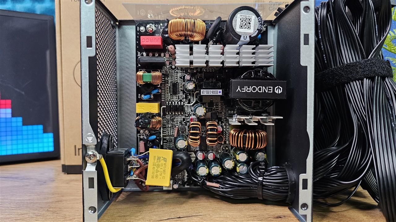 Jakość zastosowanych komponentów jest dobra – wszystkie kondensatory elektrolityczne i polimerowe są marki TEAPO i mają deklarowaną odporność temperaturową do 105 °C. Półprzewodniki pochodzą od mniej znanych producentów, jednak ENDORFY wyraźnie wierzy w tę platformę, co potwierdza 5-letnim okresem gwarancyjnym.