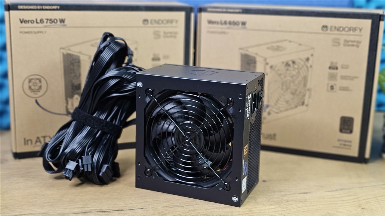 ENDORFY do tej pory nie miało w ofercie typowo budżetowego zasilacza w pełni zgodnego z ATX 3.1 i PCIe 5.1. Seria Vero L6 wypełnia tę lukę, oferując konstrukcję przygotowaną pod współczesne zestawy. Testowany dziś ENDORFY Vero L6 750W to zasilacz niemodularny, wyposażony w natywne złącze PCIe (12V-2x6), jedną mocną linię +12 V oraz certyfikaty sprawności 80 PLUS Bronze i Cybenetics Silver. Producent stawia na solidną elektronikę z kondensatorami TEAPO, czy też na taśmowe okablowanie oraz 120-milimetrowy wentylator Stratus na łożysku FDB. Zapraszam więc na analizę wnętrza i testy na sztucznym obciążeniu.