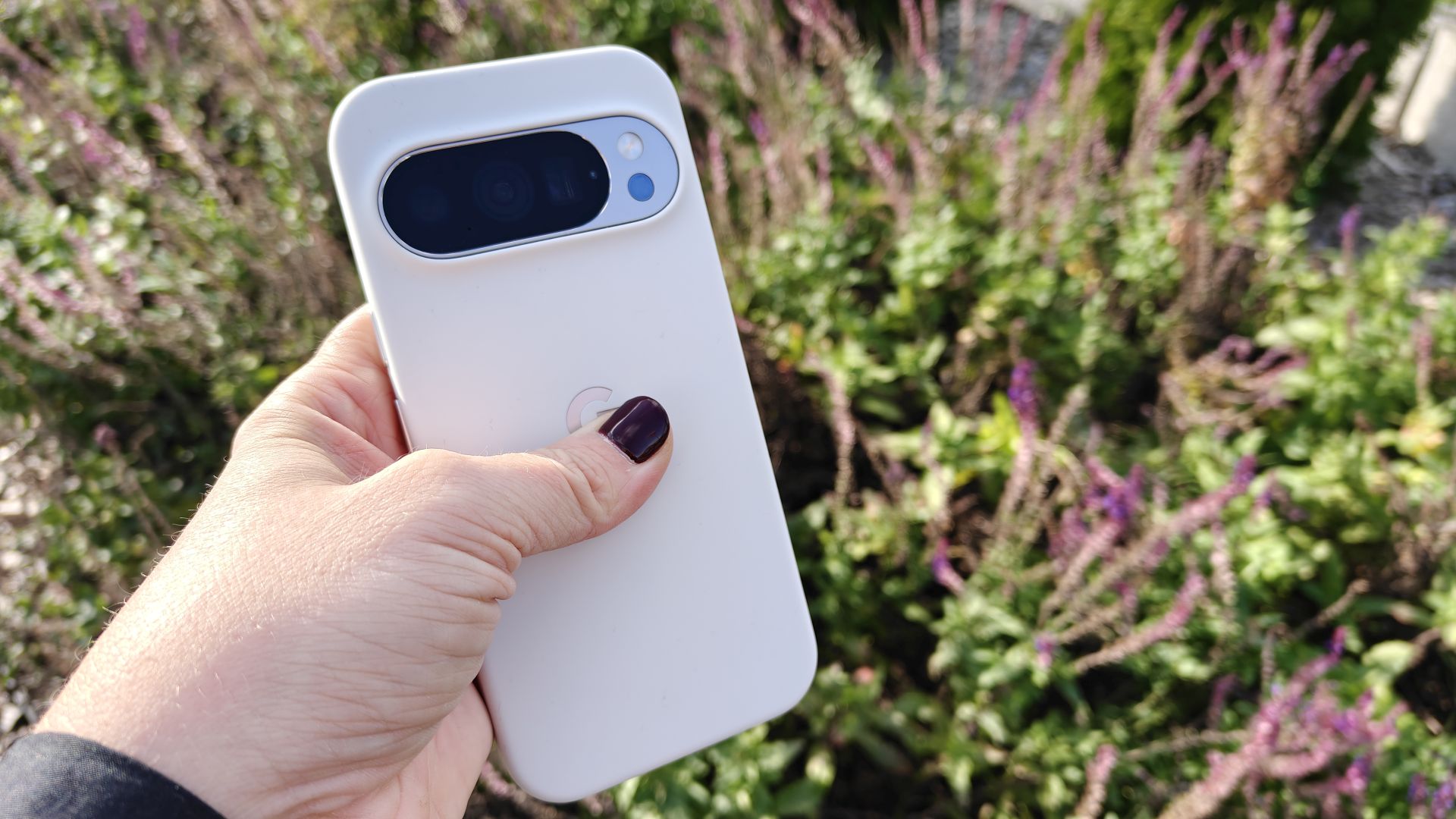 A jak wygląda sam smartfon? Tak, jak chcieliby użytkownicy Apple po tegorocznych wersjach Pro, czyli niemal dokładnie tak samo jak w ubiegłym roku. Oznacza to połączenie charakterystycznego zaoblenia narożników, płaskiego ekranu, spłaszczonych aluminiowych ramek i płaskich szklanych plecków o satynowym wykończeniu, które są chronione przez Gorilla Glass Victus 2. Jak zaznaczyłam już przy recenzji Pixela 9 Pro Max, wersja kolorystyczna Porcelain prezentuje się niezwykle stylowo i elegancko, zwłaszcza w duecie ze srebrnymi ramkami… a przynajmniej wyczyszczonymi, bo niestety uwielbiają one zbierać odciski palców. Nie zabrakło też znaku rozpoznawczego Pixeli, czyli rozciągającej się na całą szerokość tylnego panelu wyspy aparatów - ponownie ma kształt dużej kapsułki, mocno wystaje nad plecki i po prostu krzyczy "patrz na mnie". No cóż, najwyższy czas ją pokochać, bo Amerykanie najwyraźniej nie zamierzają się jej pozbyć.