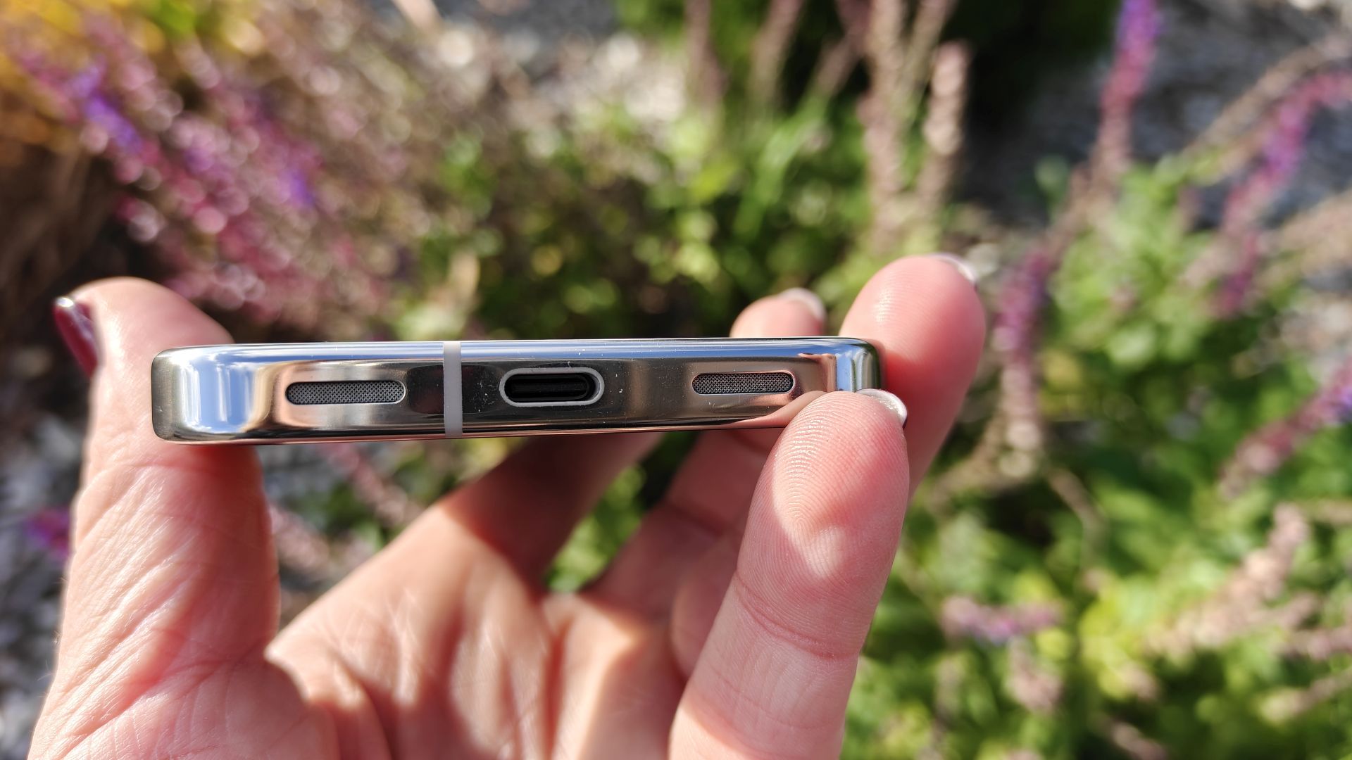 Od poprzedniego roku delikatnie zmienił się jednak rozkład elementów na ramce, niestety nie tak, jak bym sobie tego życzyła. Ponownie mogłam więc przeklinać pomysł zamiany miejscami przycisków zasilania i regulacji głośności - ten ostatni jest niżej, a nawyki naprawdę trudno zmienić, więc witaj omyłkowe wygaszanie ekranu przy próbie zwiększenia głośności itp. Poza tym lewa strona jest pusta, ale na górnej ramce oprócz mikrofonu znajdziemy tym razem również tackę na karty SIM, a na dolnej tylko podwójny grill głośnika multimedialnego (głośnik do rozmów nad ekranem jest niemal niewidoczny) i złącze USB typu C (USB 3.2), więc po drodze zniknął gdzieś drugi mikrofon.